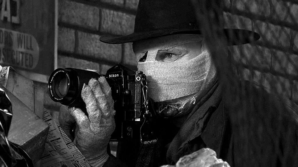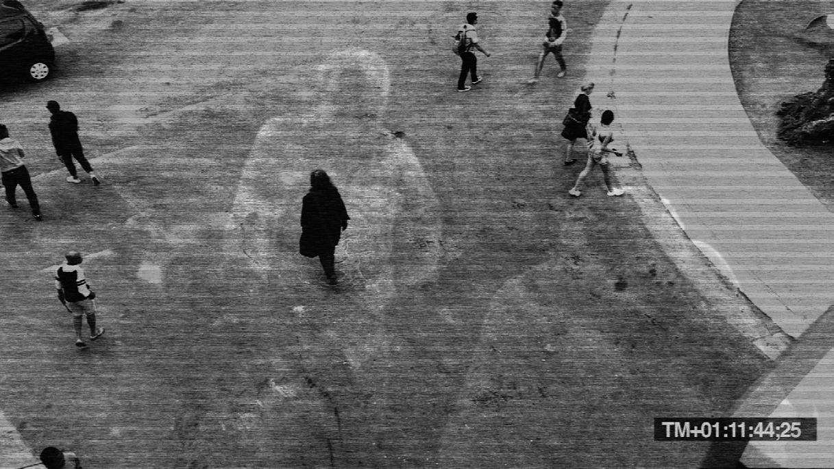 MiraDetenido.enotra dirección. LaAusente.luzpega en la espalda y el rostro ha quedado en la sombra. Sin respirar. Sin moverse. El lente de la cámara le congela la sangre.