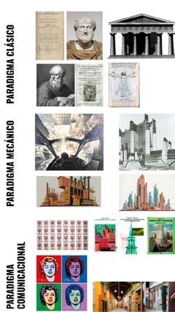 La Bauhaus busca la industri alización de la vivienda mediante la simplificación de la forma de la misma en base a la geometría y la optimización del espacio plante ando medidas mínimas. Y por último, nos encontramos con el paradigma comunicacio nal afectado en su totalidad por la globalización y la necesidad de transmitir un mensaje. Al cual se lo puede ubicar a partir de mediados del siglo XX. Existe en él una re categorización del arte, incorpora la idea de comunicar alguna idea fuerte. Uno de los libros princi pales que plantean estas ideas es: “el medio es el mensaje” que pone la atención sobre el tema tec nológico y lo social estableciendo un beneficio mutuo. No podemos dejar de mencio nar la arquitectura posmoderna de esta época que se caracterizó por los mensajes que podía trans mitir. Esta debía ser reconocible e identificable. Entre los principales libros se destaca “El lenguaje de la arquitectura posmoderna”.