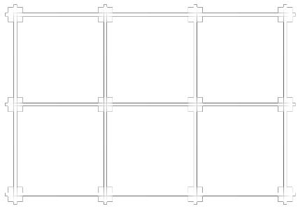 Utilizaremos tirantes y cerchas, verticales y horizonta de las puertas torii, con secciones pequeñas de madera maciza. Si bien esto es más común en la elaboración de muebles, casos como el de la “Sala de Tiro y Club de Bo xeo” de FT Architects, demuestran que es posible utilizar las para la conformación de espacios arquitectónicos.