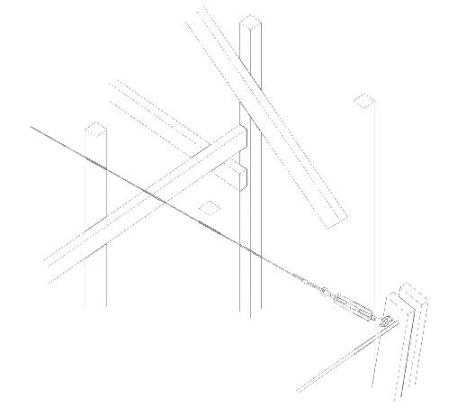 Incorporación de refuerzos con tubulares metálicos a la estructura de los arcos, que servirán para atar y guiar la tela que completará finalmente el pórtico. Se incorporarán unos cables tensados generando dos cruces para evitar el pandeo de estas piezas.
