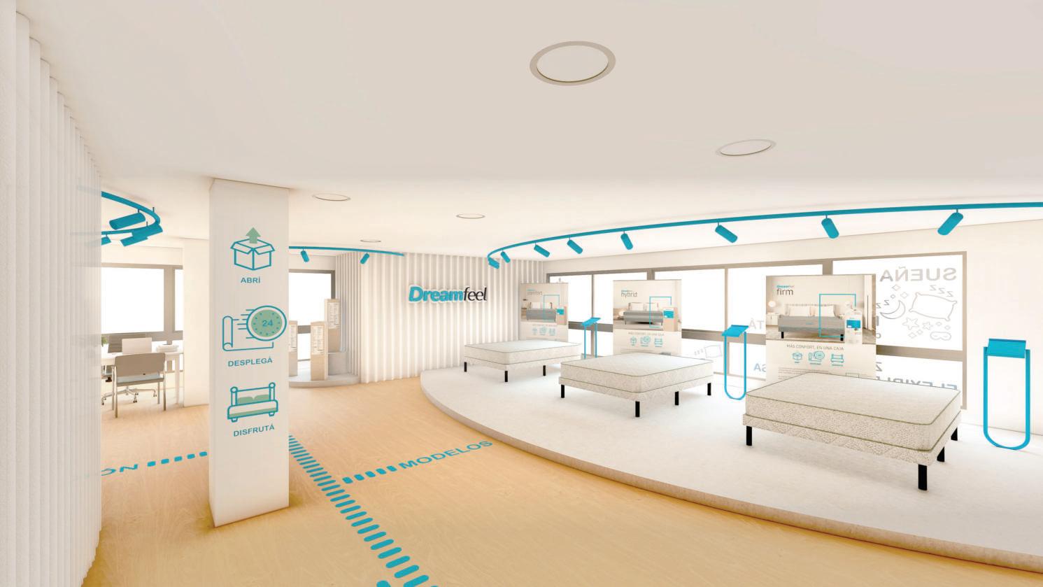 Proyecto Básico para nuevo salón de colchones DreamFeel En conjunto con Antonio Verdú. Abril-Mayo 2024. Montevideo.