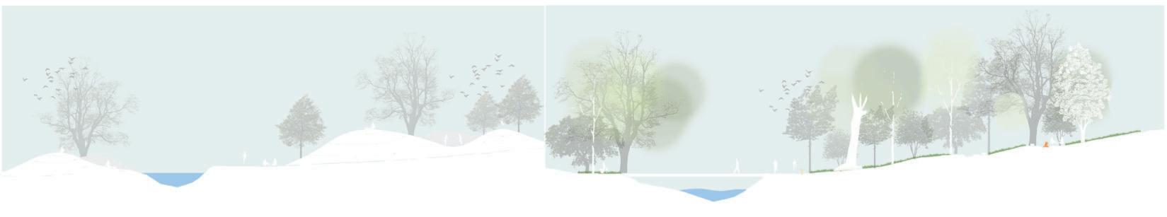 +0,00m +10,00m +26,55m +36,35m +65,00m +72,00m +84,50m +12,00m +48,80m +57,60m 10 Planta baja Cota + 0,00m Planta primera museo Cota + 10,00m Planta segunda museo Cota + 26,55m Rooftop Cota + 65,00m Planta baja residencia Cota 0,00m Planta primera residencia Cota 6,00m Planta segunda residencia Cota 9,00m Cota 12,00m Cubierta del Restaurante: se mantiene la estructura original de vigas y pilares de hormigón, liberando los muros y ampliando las aberturas para hacer del espacio aún más luminoso. En el área de terraza, se mantiene la estructura de hormigón original a la vista, protegiéndola para adaptarse al exterior, y el dispositivo característico de los silos en su color original, dotando a este espacio de un carácter único y especial. En la última planta de intervención, se localiza el restaurante, con amplias cocinas para ser utilizadas tanto para el servicio de restaurante como para las prácticas y laboratorio de creaciones culinarias. El espacio de restaurante cuenta con vistas privilegiadas al entorno que rodea los silos, así como también permite ver el trabajo en islas de la cocina. Terraza del restaurante, con espacio