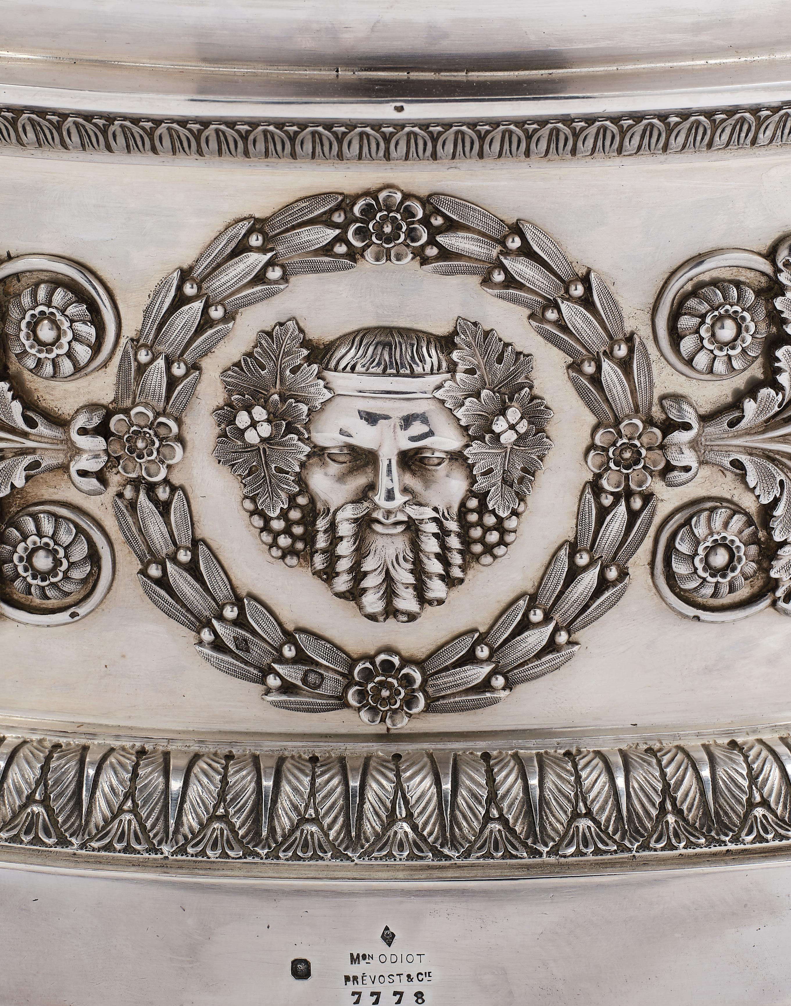 Conservant son prestige à la Restauration monarchique et poursuivant son développement tout au long du XIXe siècle, la maison Odiot prit la dénomination Odiot, Prévost & Cie entre 1894 et 1906, compagnie gérée par Emile Prévost, Paul Edouard Récipon et Gustave Odiot. Elle arbora un nouveau poinçon tel que nous pouvons le constater sur notre pièce et révélant la continuité des modèles néoclassiques qui firent la renommée de cette dynastie d'orfèvres à l'aube d'une ère nouvelle.