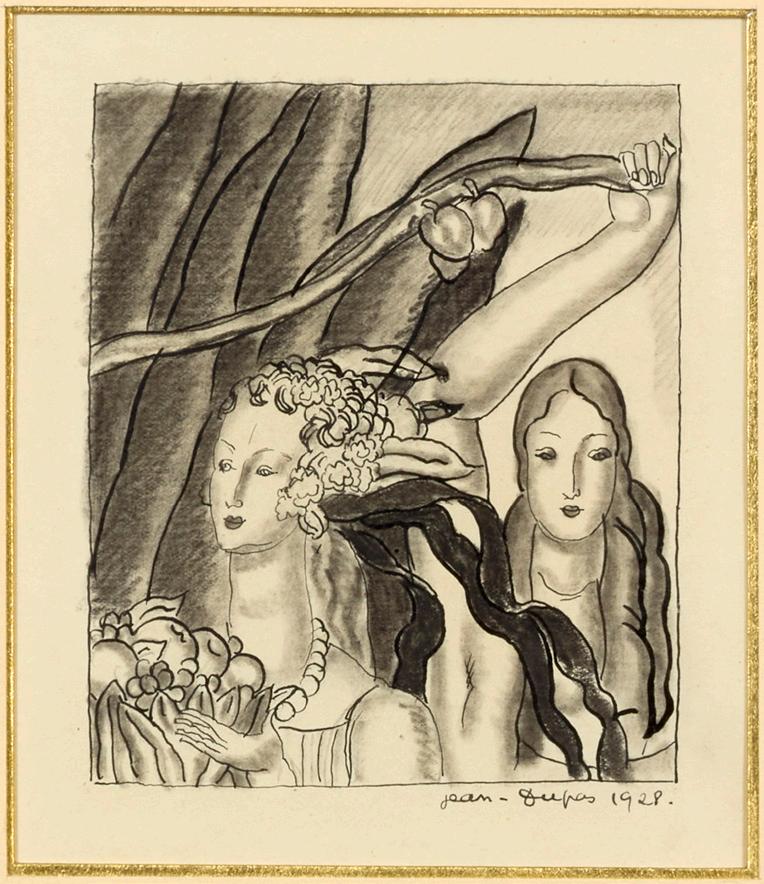 Dessin au fusain et encre de Chine signé en bas à droite et daté 1928 15 x 13 cm ( à vue sous encadrement)