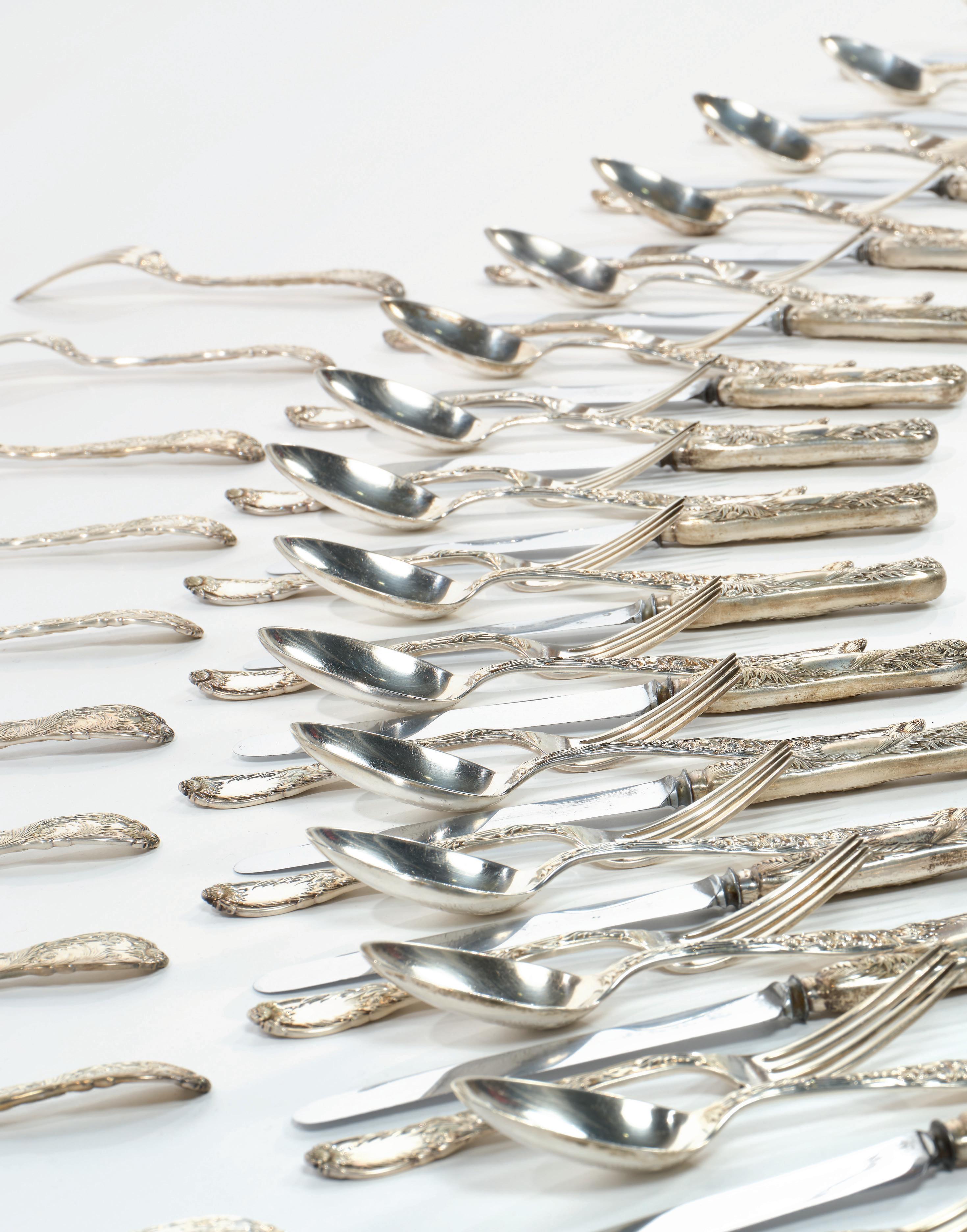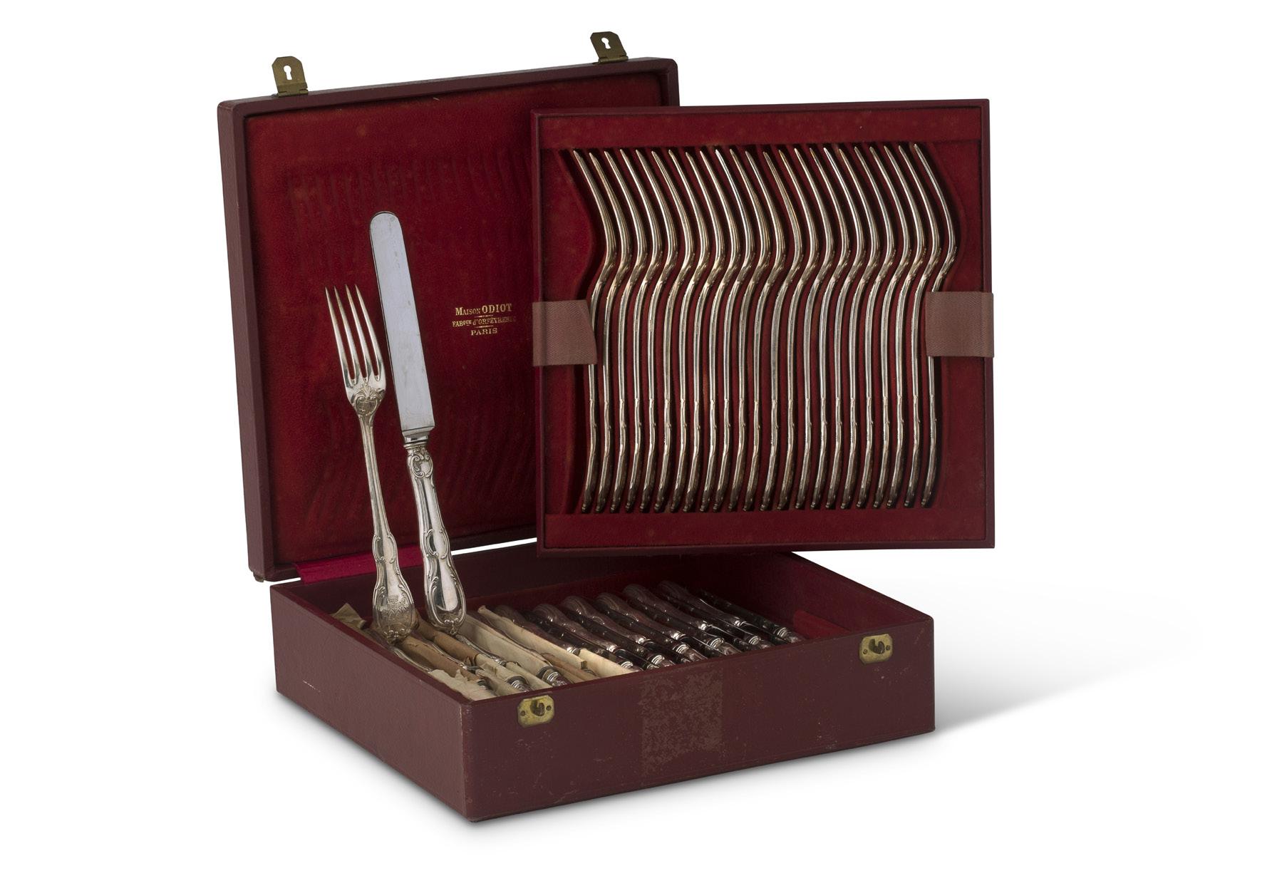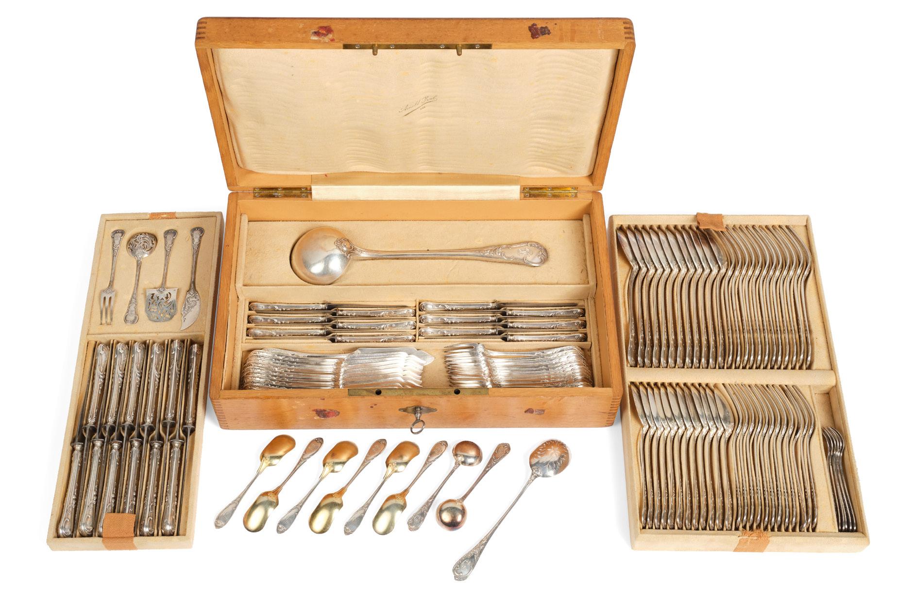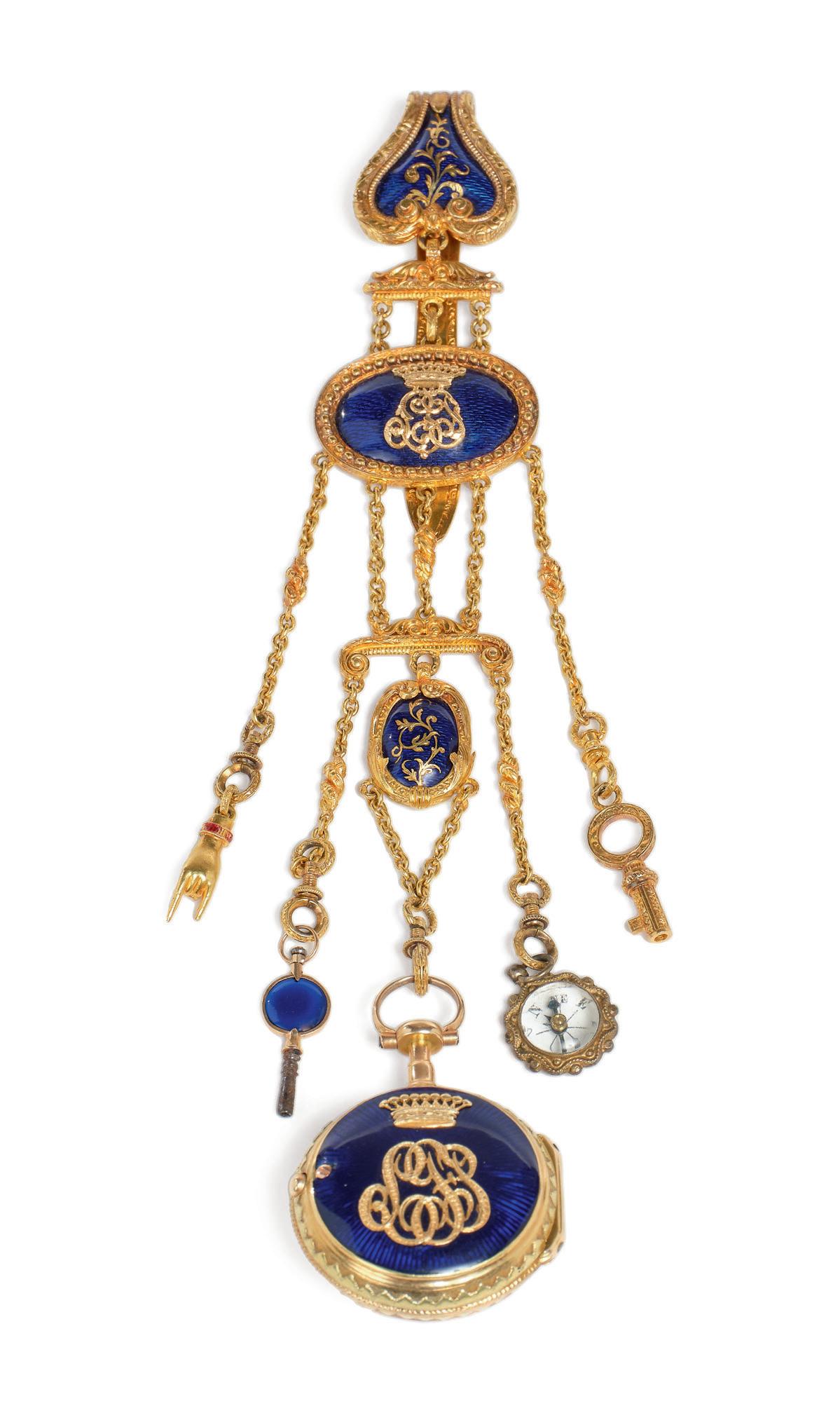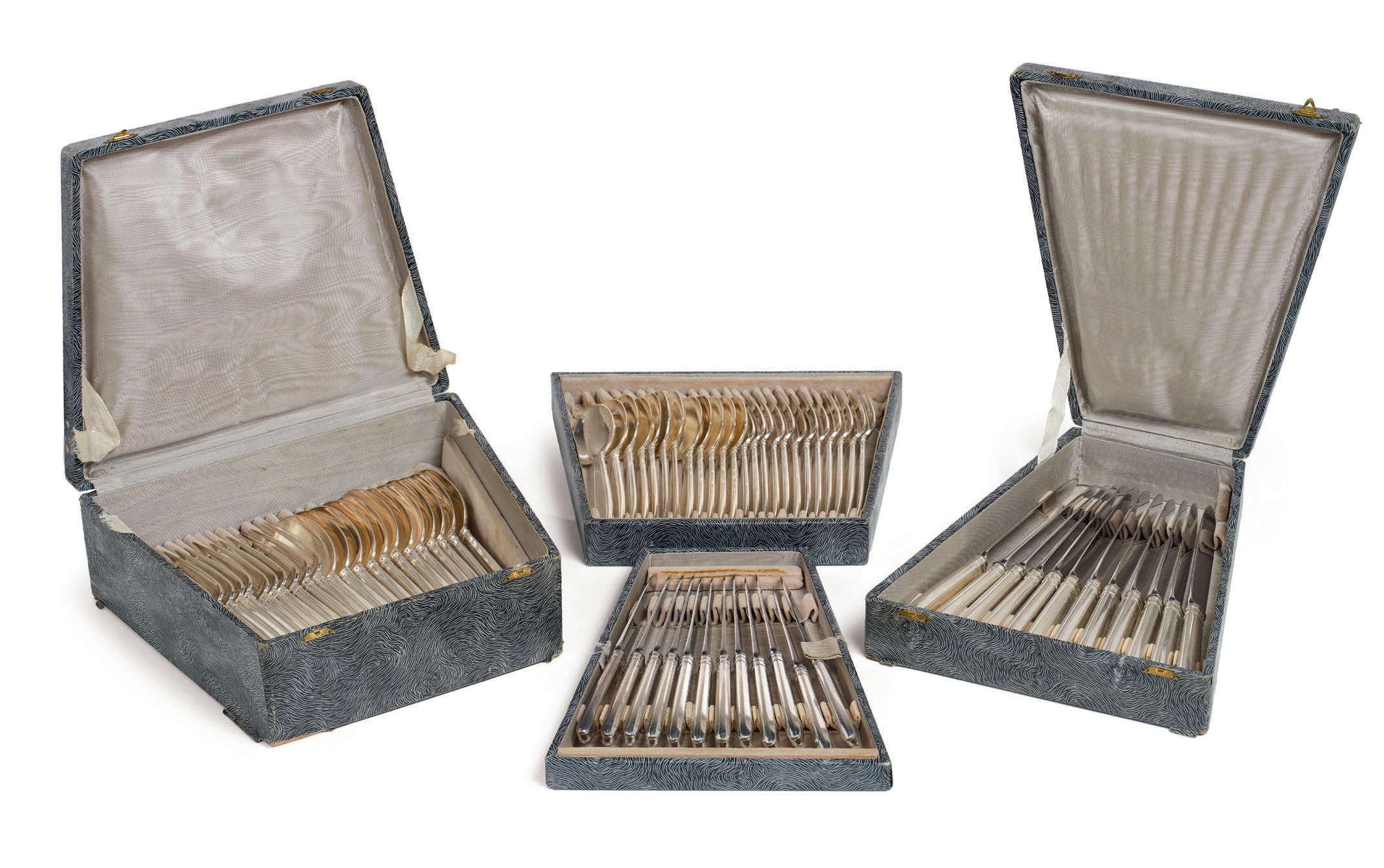 On y joint un nécessaire de voyage en argent comprenant des petits ustensiles divers. XVIIIe siècle.