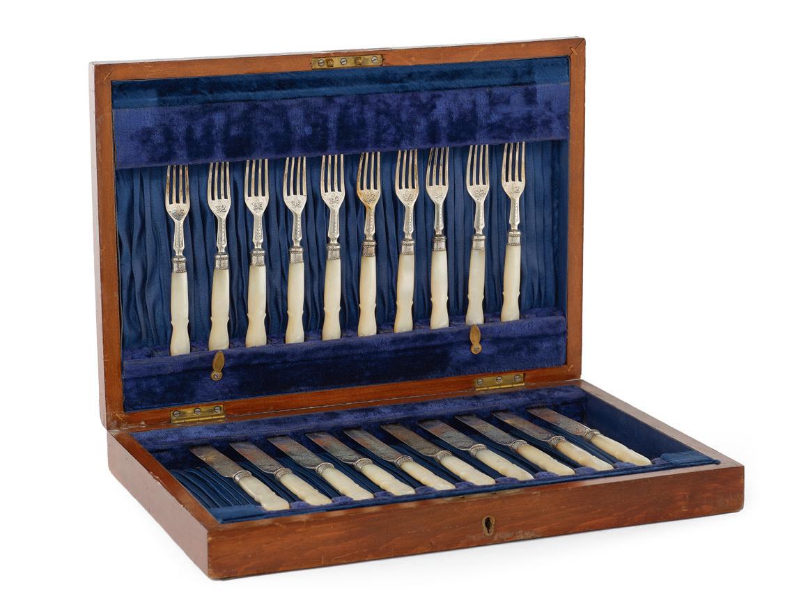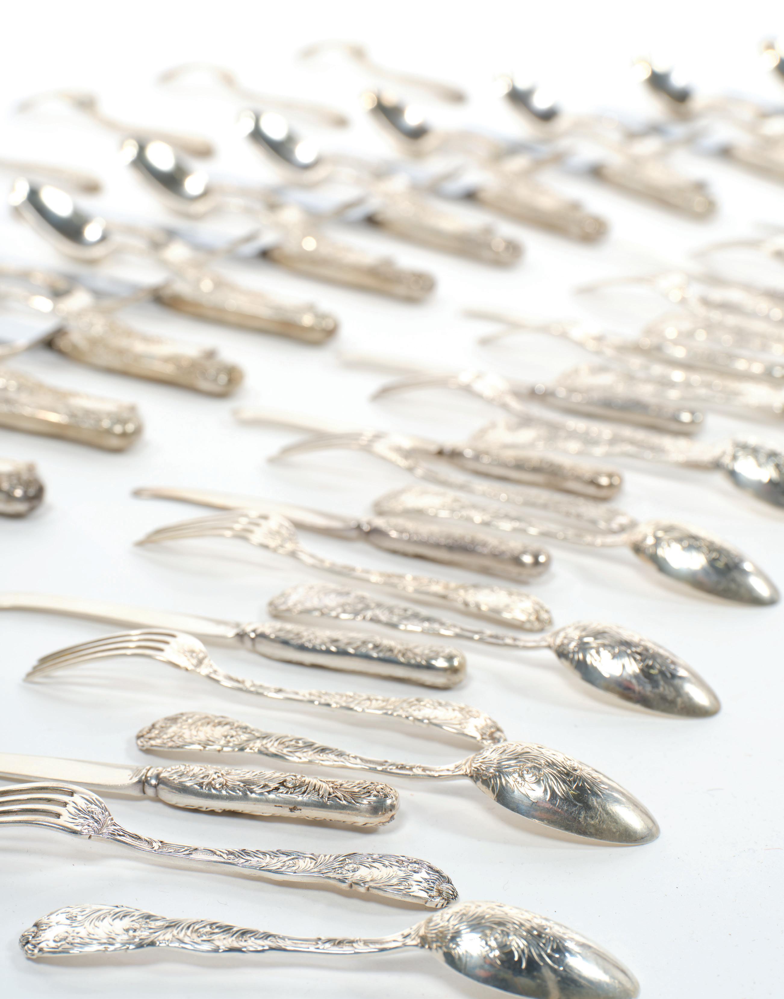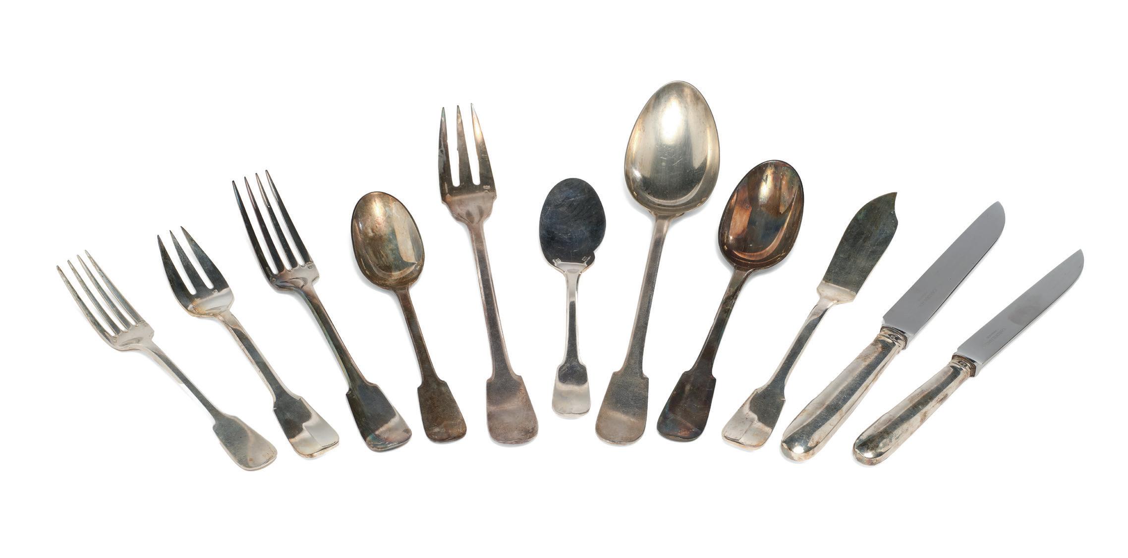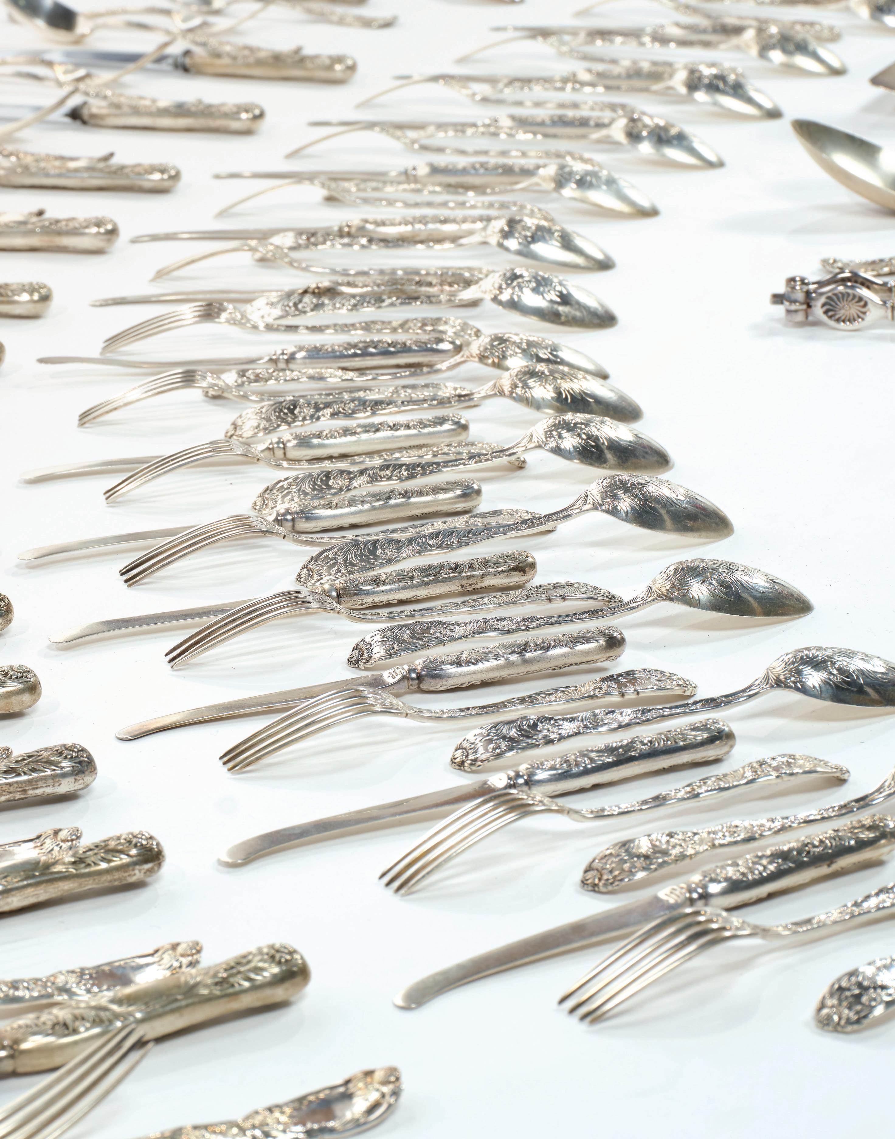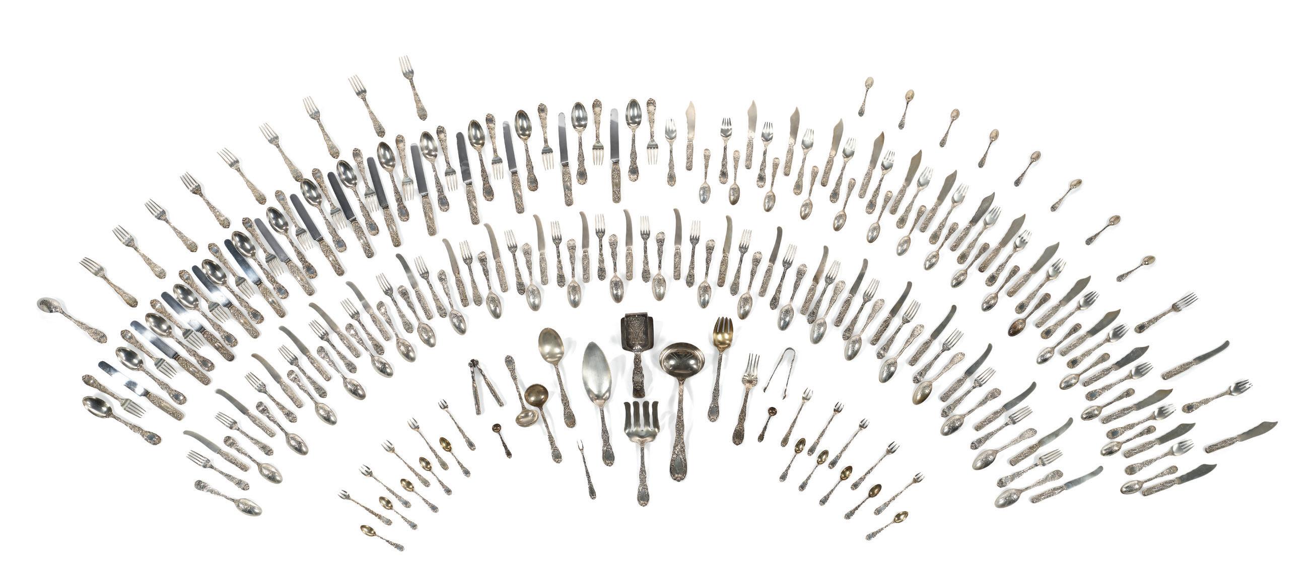 On y joint un nécessaire de voyage en argent comprenant des petits ustensiles divers. XVIIIe siècle.