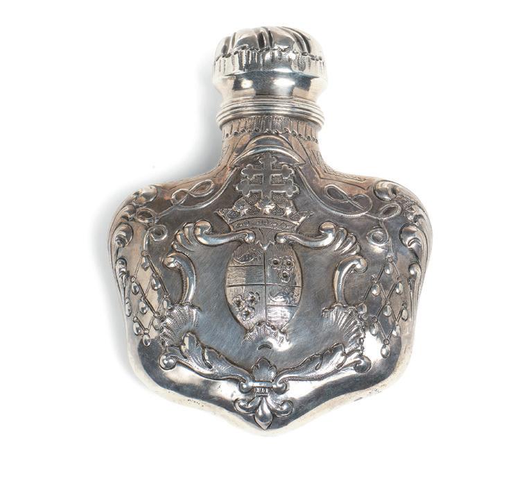en argent repoussé à décor d’armoiries d’un cardinal sur la panse.