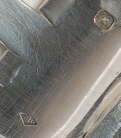 En partie du XVIII e siècle. Maître orfèvre illisible. Poinçons divers dont Minerve sur le bouchon.