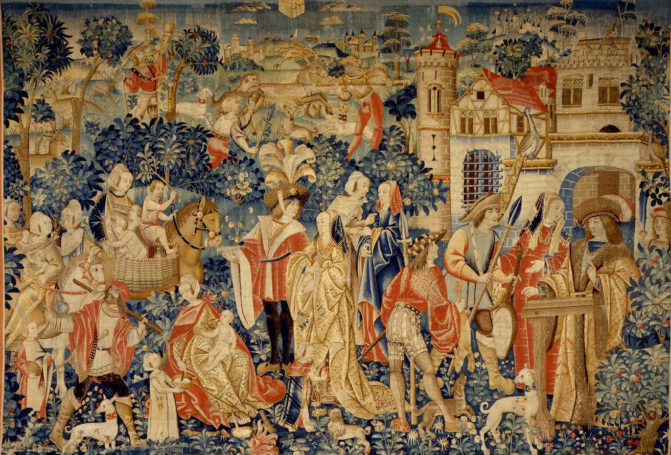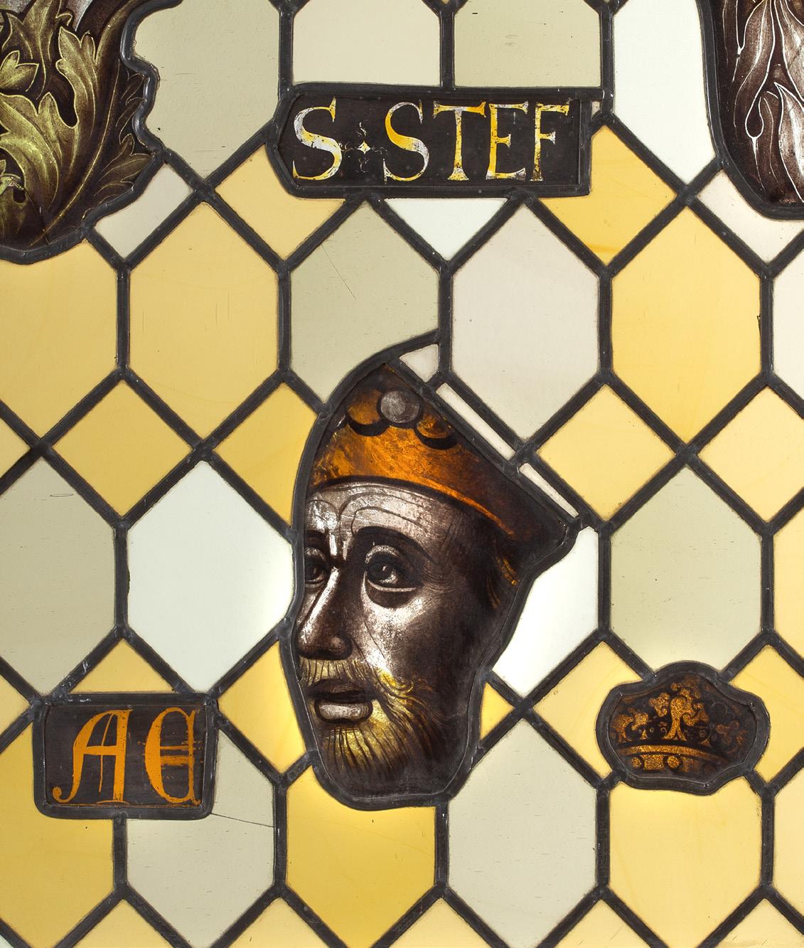 Étiquette et inscriptions au dessous : « Sainte Anne, XVe siècle provenance probable église de l’enceinte fortifiée de Charlemont (Ardennes) édifiée par Charles Quint en 1540 (...) Statue mutilée découverte vers 1905