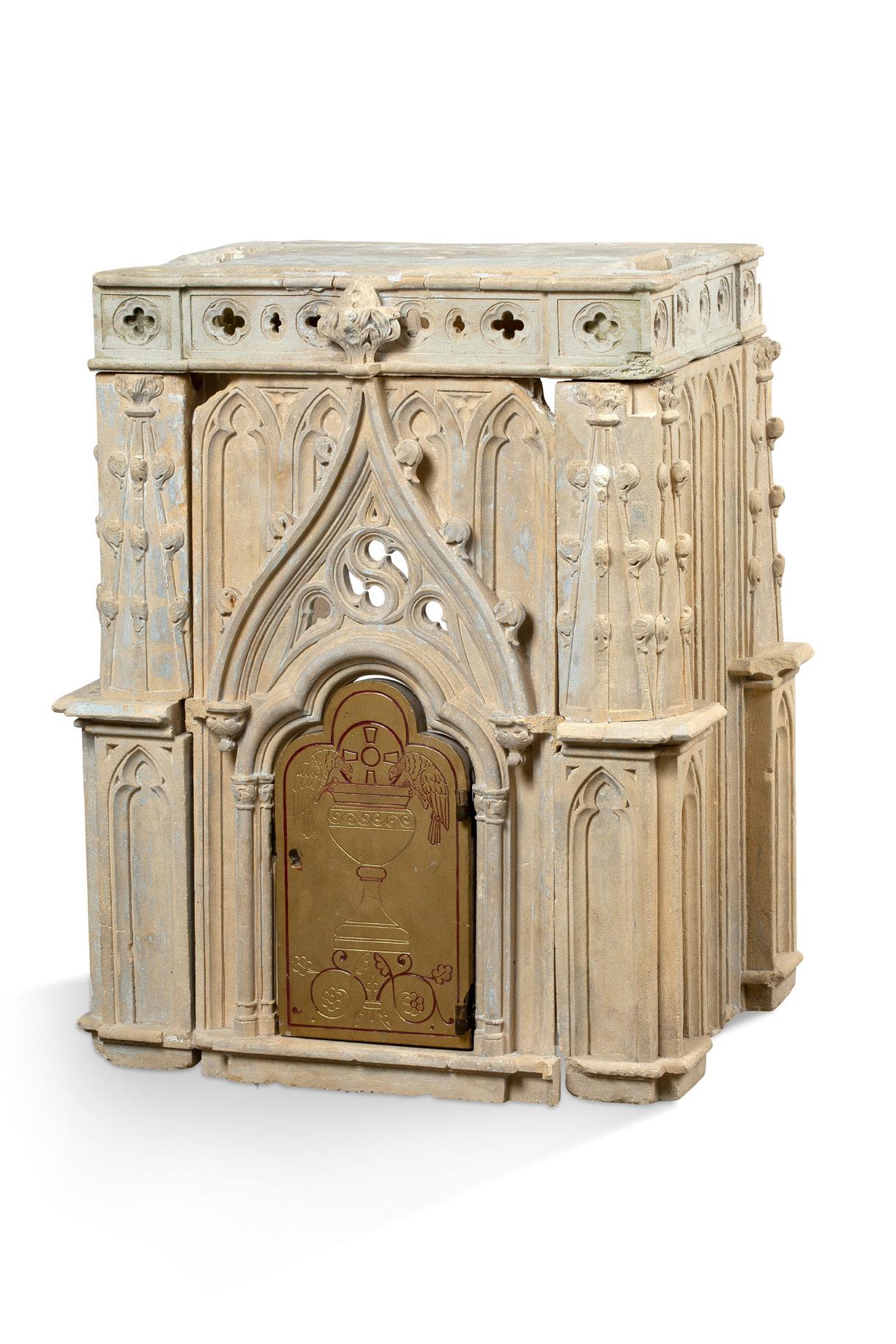 Hauteur : 41 cm - Largeur : 40 cm Profondeur : 71 cm (fragment, traces de restaurations anciennes, érosion homogène, percé au dessous pour soclage) 30 000 - 40 000 €