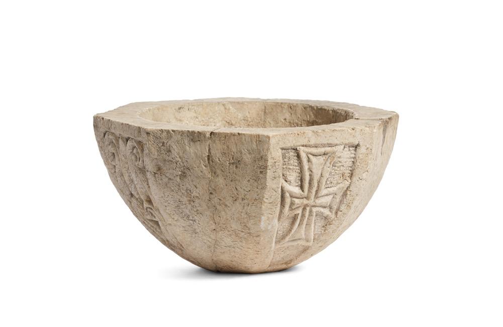 Italie du Nord, époque romane, XII e siècle Hauteur : 20 cm - Diamètre : 34,5 cm (ébrechures, usures) 4 000 - 6 000 €
