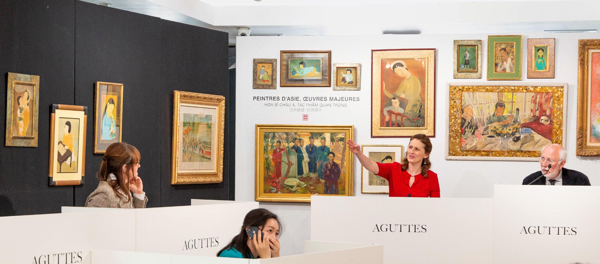 Năm 2014, cách đây mười năm, Aguttes đã phát hiện tác phẩm Le Thé của Lê Phổ (một trong những học sinh của khoá đầu tiên) tại Paris. Nhà đấu giá quyết định dành cho tác phẩm một vị trí đặc biệt trong phiên đấu giá, giúp cho tác phẩm đạt được mức giá bán phù hợp. Điều này cũng khơi nguồn cho sự thức tỉnh của một thị trường đã ngủ quên kể từ giữa thế kỷ XX. Những kết quả ghi nhận được trong những năm gần đây trên thị trường chứng minh cho sự quan tâm ngày càng tăng của những người yêu nghệ thuật đối với những phiên đấu giá dành cho những tên tuổi lớn của trường Cao đẳng Mỹ thuật Đông Dương. Trên thị trường quốc tế, sau sự tăng trưởng mạnh mẽ kể từ năm 2014, không mấy bất ngờ khi vào năm 2023, thị trường đã dần chững lại. Tác phẩm được viết bằng ba ngôn ngữ của tôi, L’Art Moderne en Indochine (Nghệ thuật Hiện đại Đông Dương) (In Fine éditions d’art), được phát hành vào đầu năm nay với mục đích cung cấp những kiến thức bổ ích cho người yêu nghệ thuật cũng như giúp khách hàng tiềm năng hiểu rõ hơn về mỗi tác phẩm trước khi quyết định tham gia đấu giá.