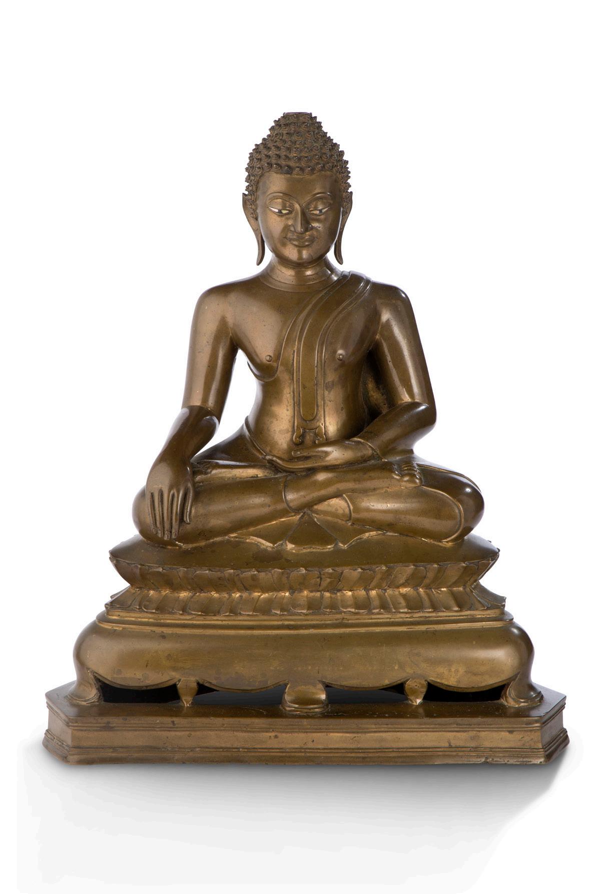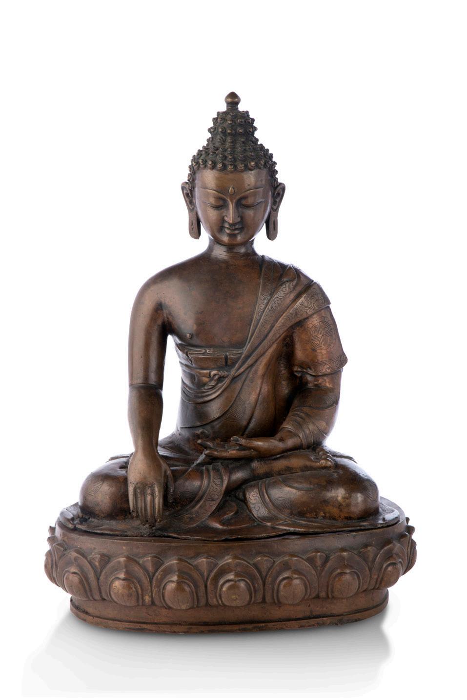 Statue en bronze doré et incrustations de pierres dure représentant Mahavairocana assis en vajrasana