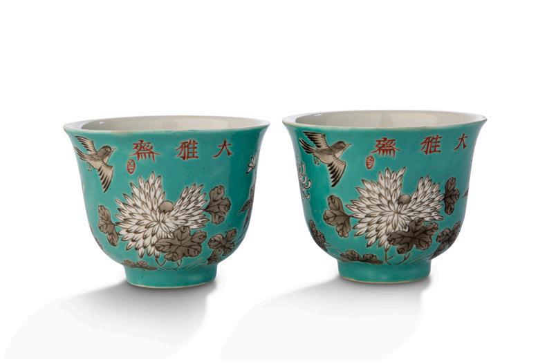 Chine. Dynastie Qing, marque et époque Qianlong (1735 ‑ 1796). Rare paire de coupes en porcelaine bleu blanc. Vendue 78 000 € en juin 2023