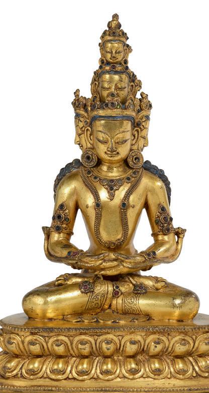Statue en bronze doré et incrustations de pierres dure représentant Mahavairocana assis en vajrasana