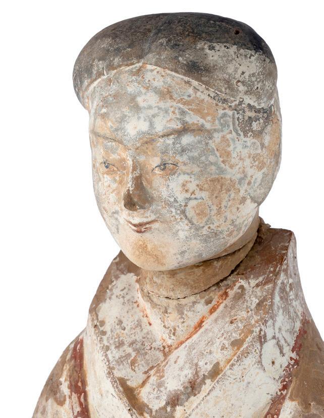 汉朝(公元前206年 - 220年) 明器,灰色多彩陶俑