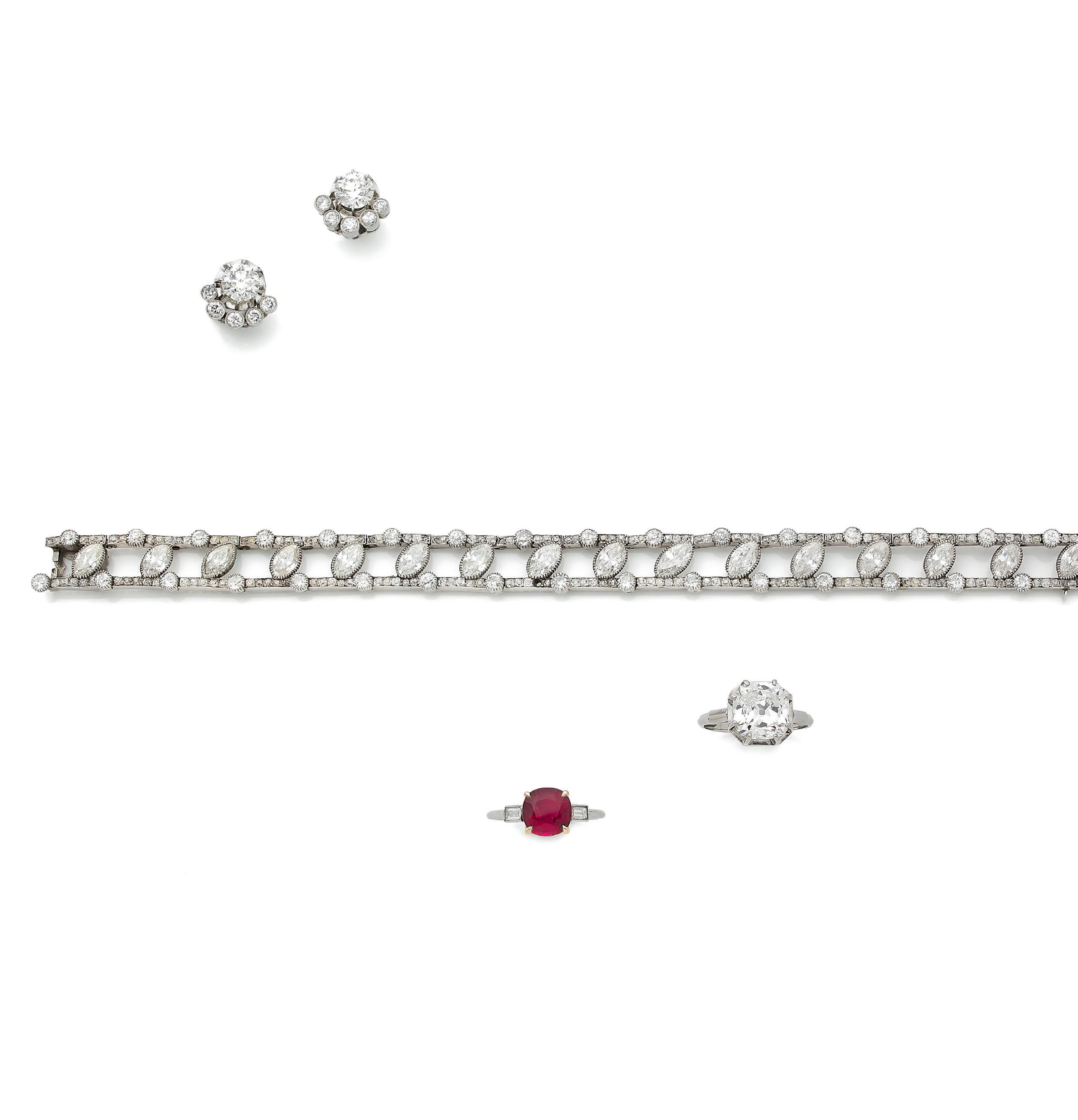 Rubis et diamants taille ancienne, fermoir or 18k (750)