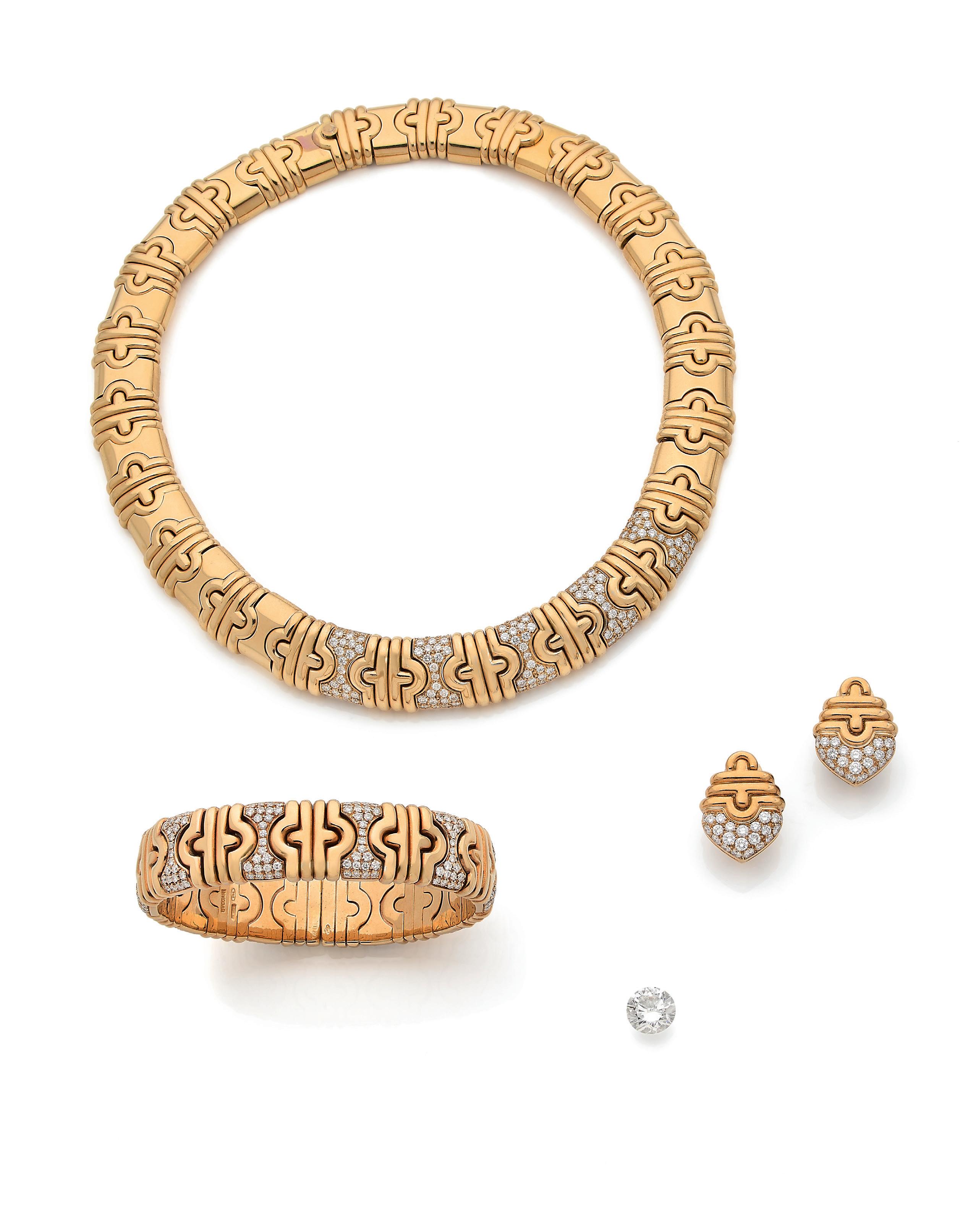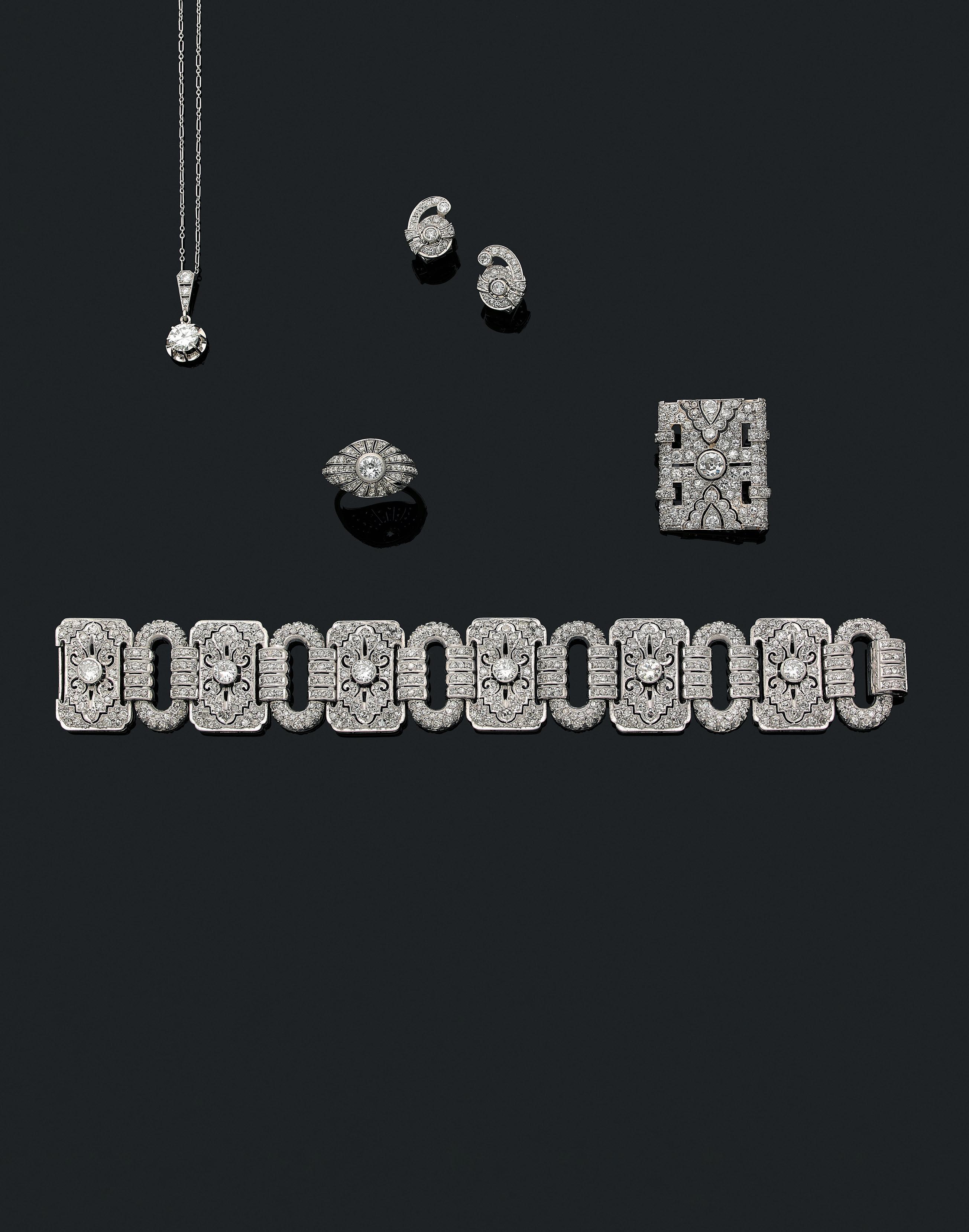 Ensemble composé d’un bracelet, pendentif, et paire de pendants d’oreilles