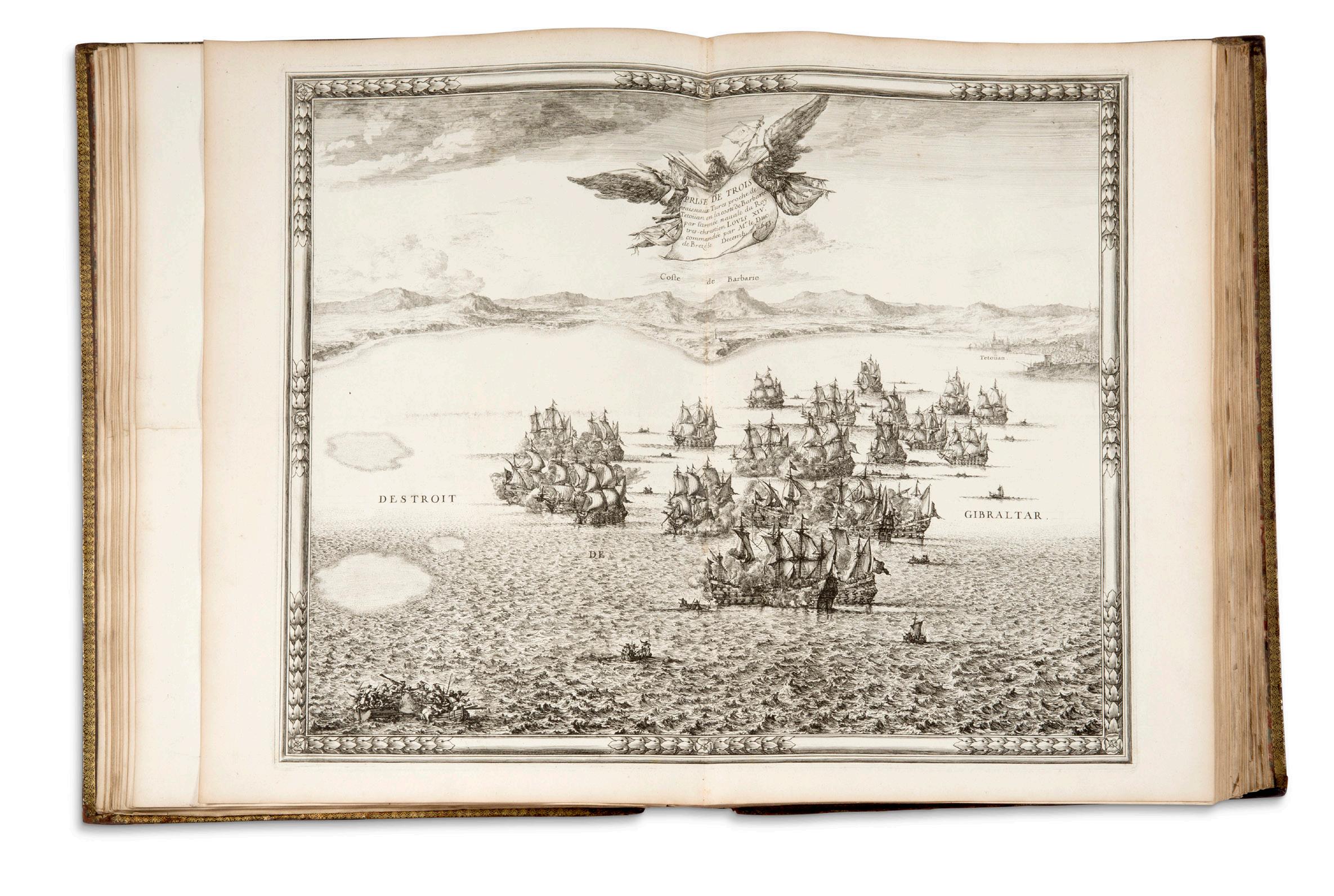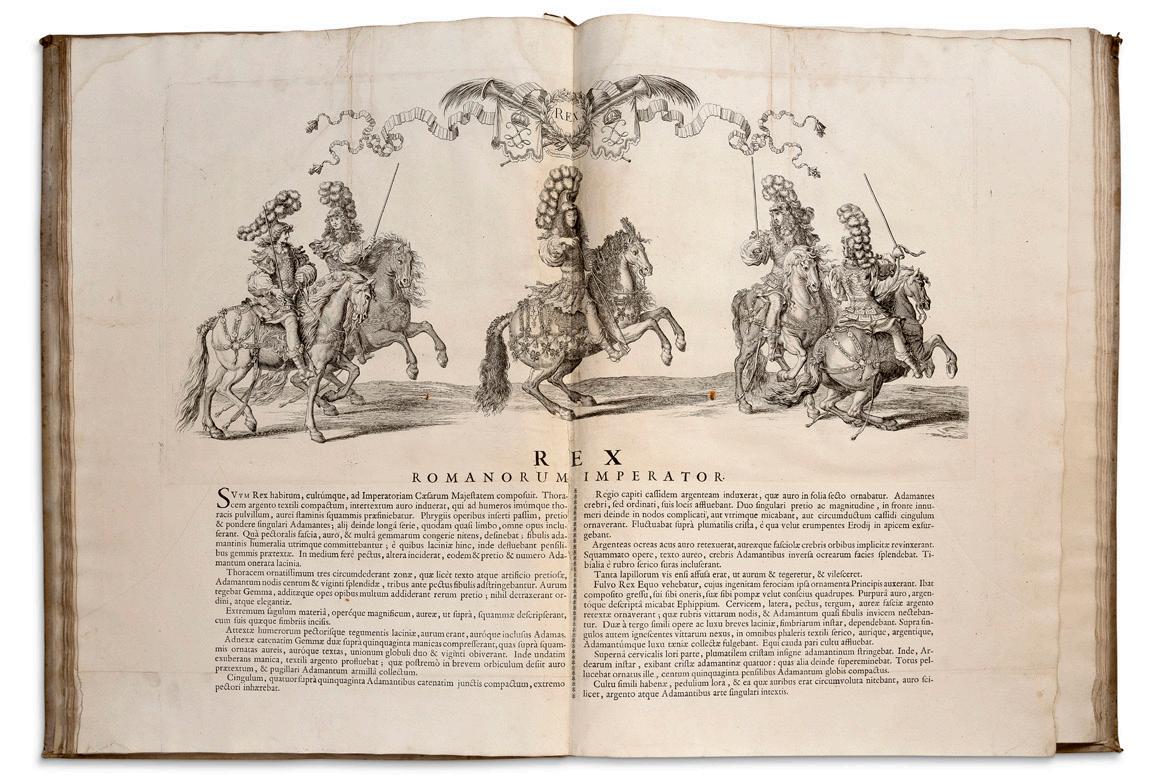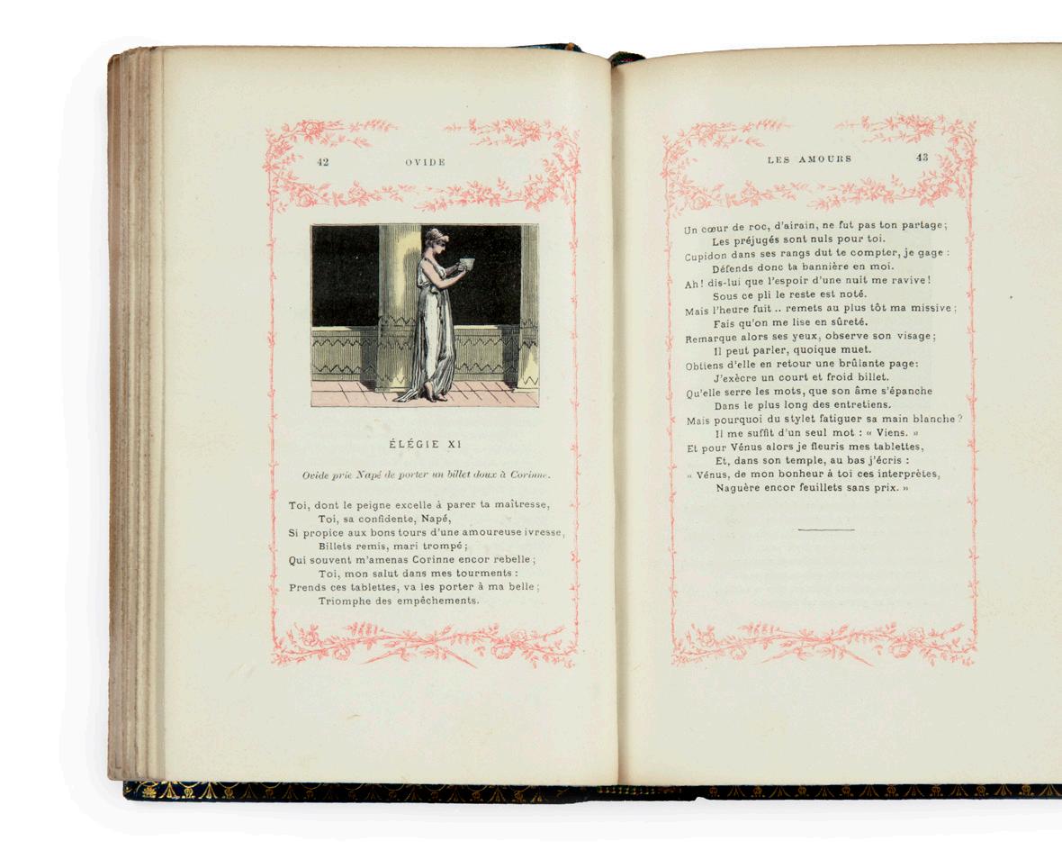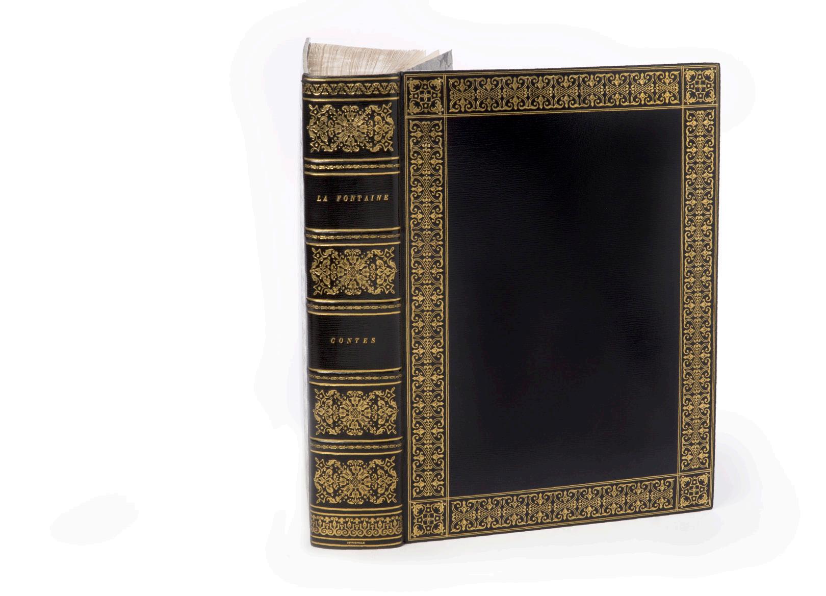 Une belle édition incunable aux initiales peintes (Jodocus d’Erfurt, Koberger, 1481) précèdera une impression vénitienne illustrée de l’Arioste, 1544, dans une remarquable reliure à la cire. Le XVI e siècle sera représenté en particulier par les deux livres concernant les poissons, de Pierre Belon (1555) et Guillaume Rondelet (1158), un atlas d’Ortelius (1598). Pour le XVII e siècle, l’on verra se succéder des gravures de Lepautre et Israël Silvestre à la gloire de Versailles, un atlas de Beaulieu relié aux armes du Grand Condé, des œuvres de Montaigne, Corneille, Bussy-Rabutin. Des œuvres littéraires illustrées au XVIII e siècle seront également proposées, dont des éditions de Molière (1734), Rabelais (1741), La Fontaine (1755), les Romans et contes de Voltaire (1778).