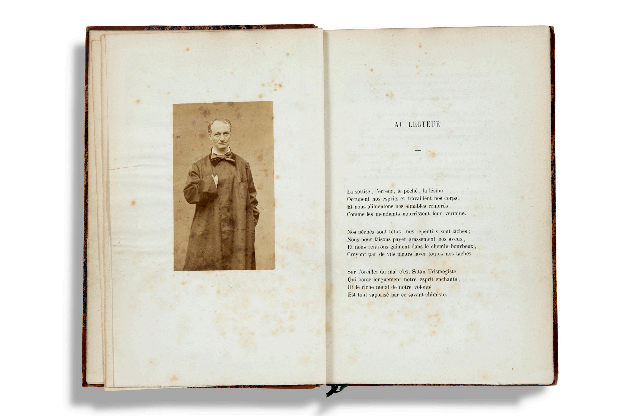 La bibliophilie des XIXe et XXe siècles se trouvera mise en valeur par des éditions illustrées de Huysmans (par Lepère, 1902), Balzac, Nodier, Zola (peintures originales dans le texte) ; des compositions de Grandville, Gavarni, Doré ; un exemplaire de l’édition originale des Fleurs du mal enrichi d’une lettre signée de Baudelaire, et d’un rare portrait photographique ; une édition originale de La peste d’Albert Camus, une d’Aragon, une autre d’André Breton.