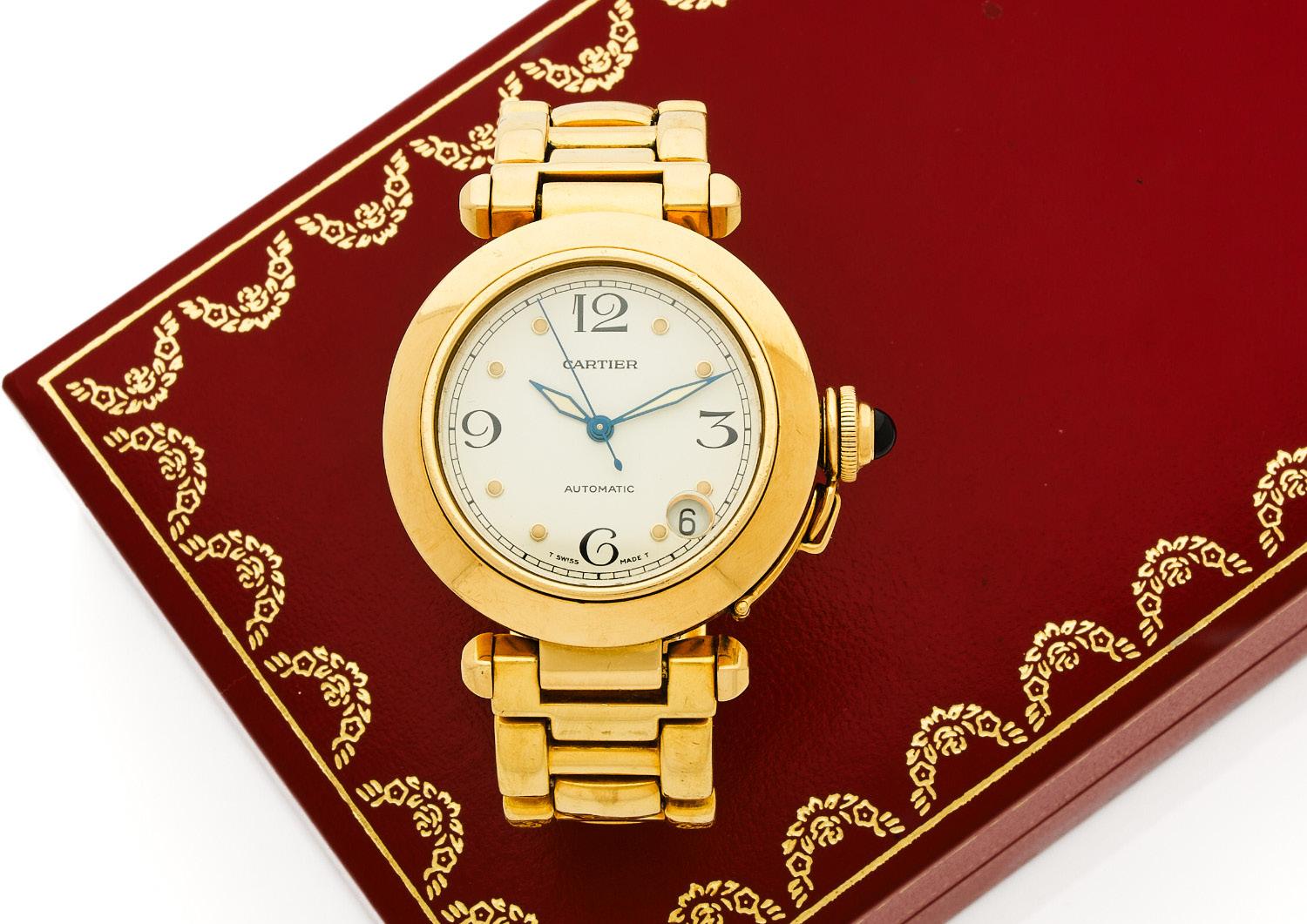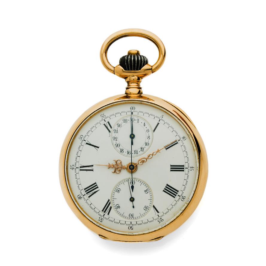 The watches and clocks we sell are all second-hand goods, most of which have the most part undergone repairs resulting in the replacement of certain parts which may not be original. AGUTTES does not provide any guarantee on the authenticity and originality of the components of a timekeeping item.