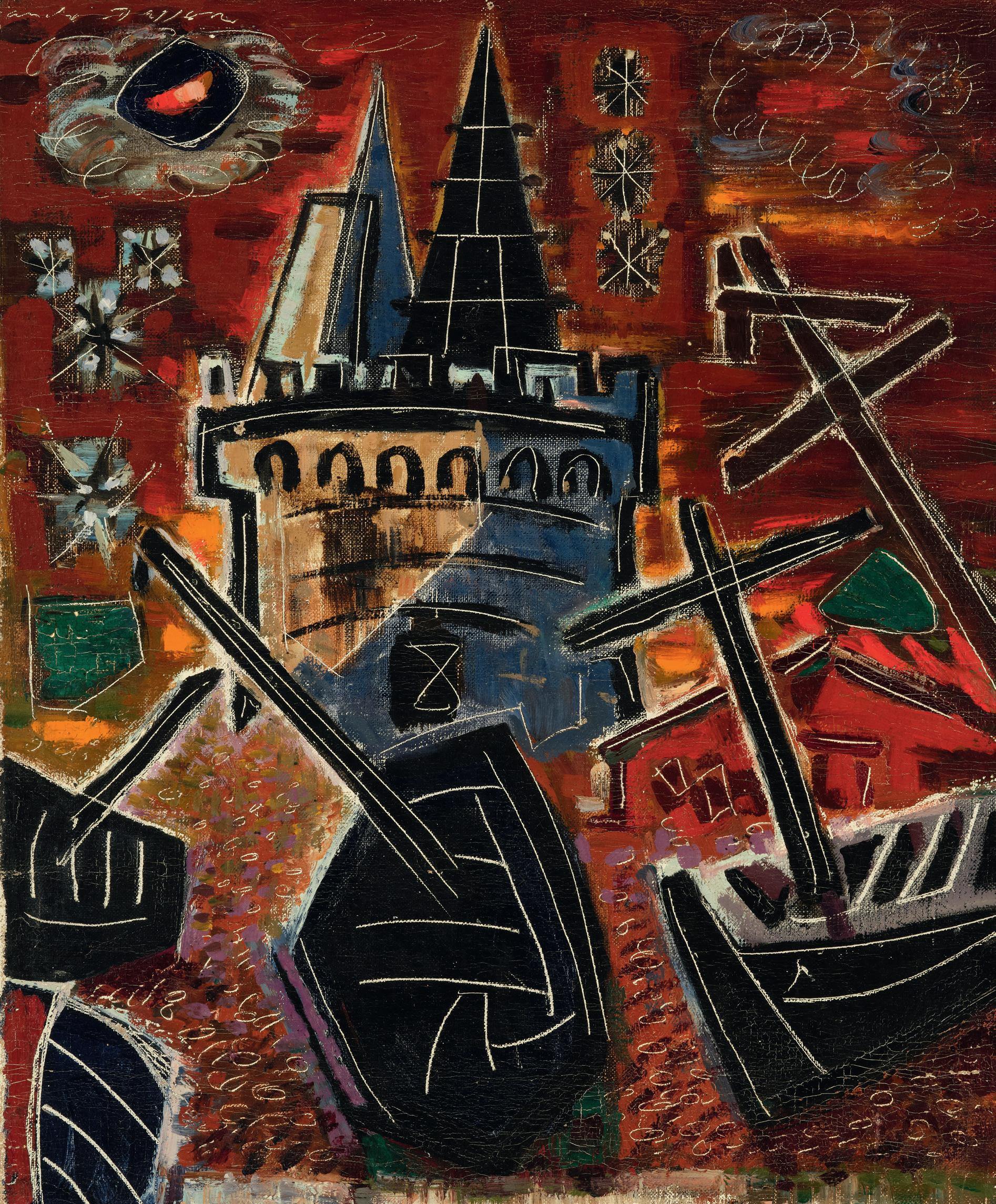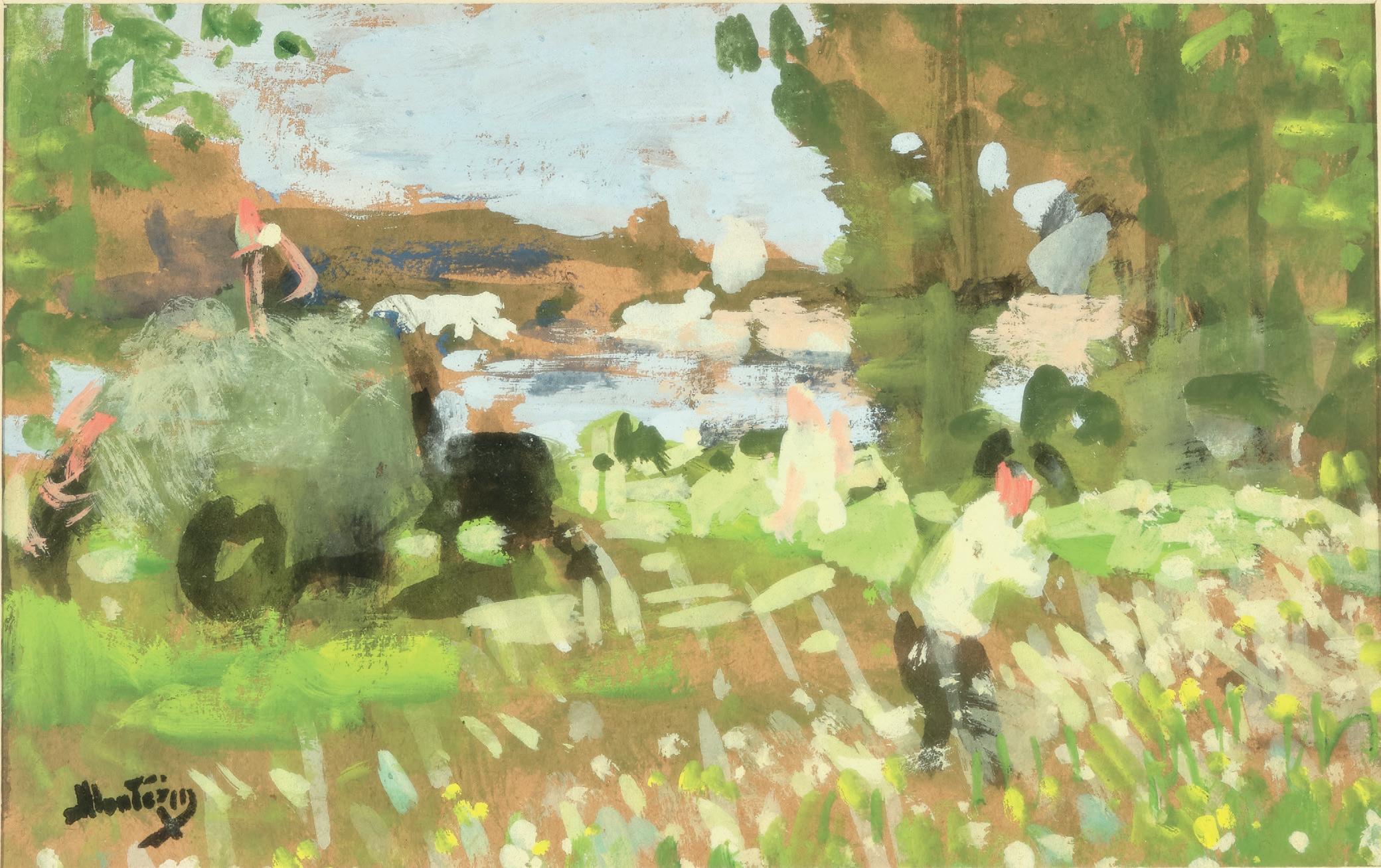 Annotée indistinctement au dos Étiquette ‘Château de Challes/(Bains) Savoie/ Souvenir et Don du peintre’ sur le châssis Oil on canvas, signed lower left, indistinctly inscribed on the reverse, label ‘Château de Challes/(Bains) Savoie/Souvenir et Don du peintre’ on the stretcher 36,5 x 56,5 cm - 14 3/8 x 22 1/4 in.