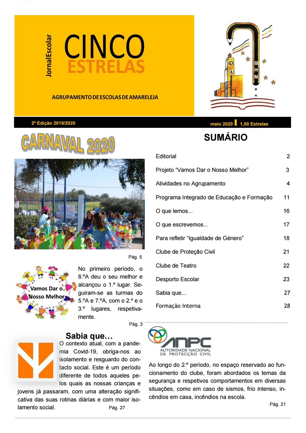 O contexto atual, com a pandemia Covid-19, obriga-nos ao isolamento e resguardo do contacto social. Este é um período diferente de todos aqueles pelos quais as nossas crianças e jovens já passaram, com uma alteração significativa das suas rotinas diárias e com maior isolamento social. Pág. 27