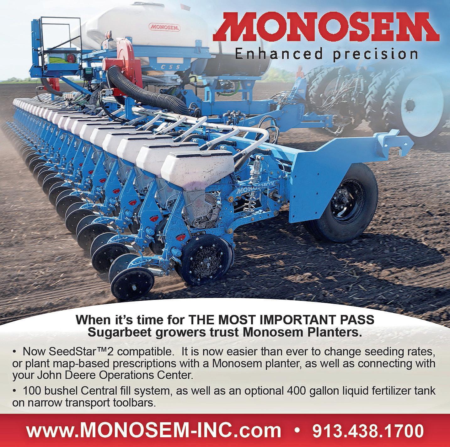 MARI FAMILY REAPS THE BENEFITS OF FOCUSING ON ECONOMIC AND ENVIRONMENTAL SUSTAINABILITY 18 NOVEMBER 2021 AGWEEK.COM/SUGARBEET FACEBOOK.COM/SUGARPUB | INSTAGRAM.COM/SUGARPUB | TWITTER.COM/SUGARPUB 19 Michigan Mike, 1-810-705-0297 Idaho Kent, 1-208-280-0079 Nebraska 21 st Century Equipment Minnesota Midwest Machinery Co. John Noorloos 1-519-339-6015 SER VICE Quality used machines available: 2010 - 2015 Ti ger V8 -4 and Ti ger 5 20 - 22 - 24 - 28 - 30 inc h heads Save time and maximize profit Award-winning 35 & 40 ton capacity & 40 ton BIG BEAR www.r opan ortha merica.com info@r opanorth america .com Nor th America BEET CARTS ROWCROP EQUIPMENT BROADCAST SPRAYERS “Head and Shoulders above the rest.” www.hsmfginc.com 1-800-ROW-CROP Since 1971 Earning Farmers Trust