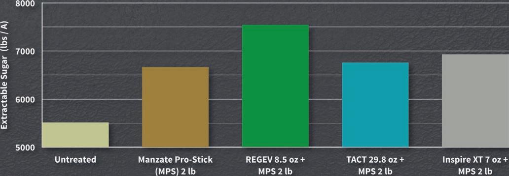 …andthose2021trial resultsalsoindicatethat regev boosts extractable sucrose content whileprotectingsugarbeetsfromCercosporaleafspot.
