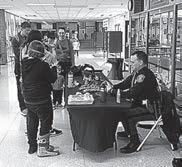 Michigan State Police Trooper Jason Kunath is seen speaking to Free Family Fun Day attendees at the MSP booth on Tuesday at Alpena High School.