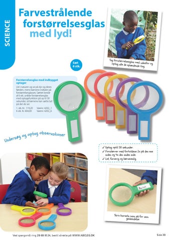 ptag observationer o g o rsøg U n de 3 Optag optil 30 sekunder. 3 Forstørrer med forholdene 2x på den ene siden og 4x den anden side. 3 Let, farverig og børnevenlig.