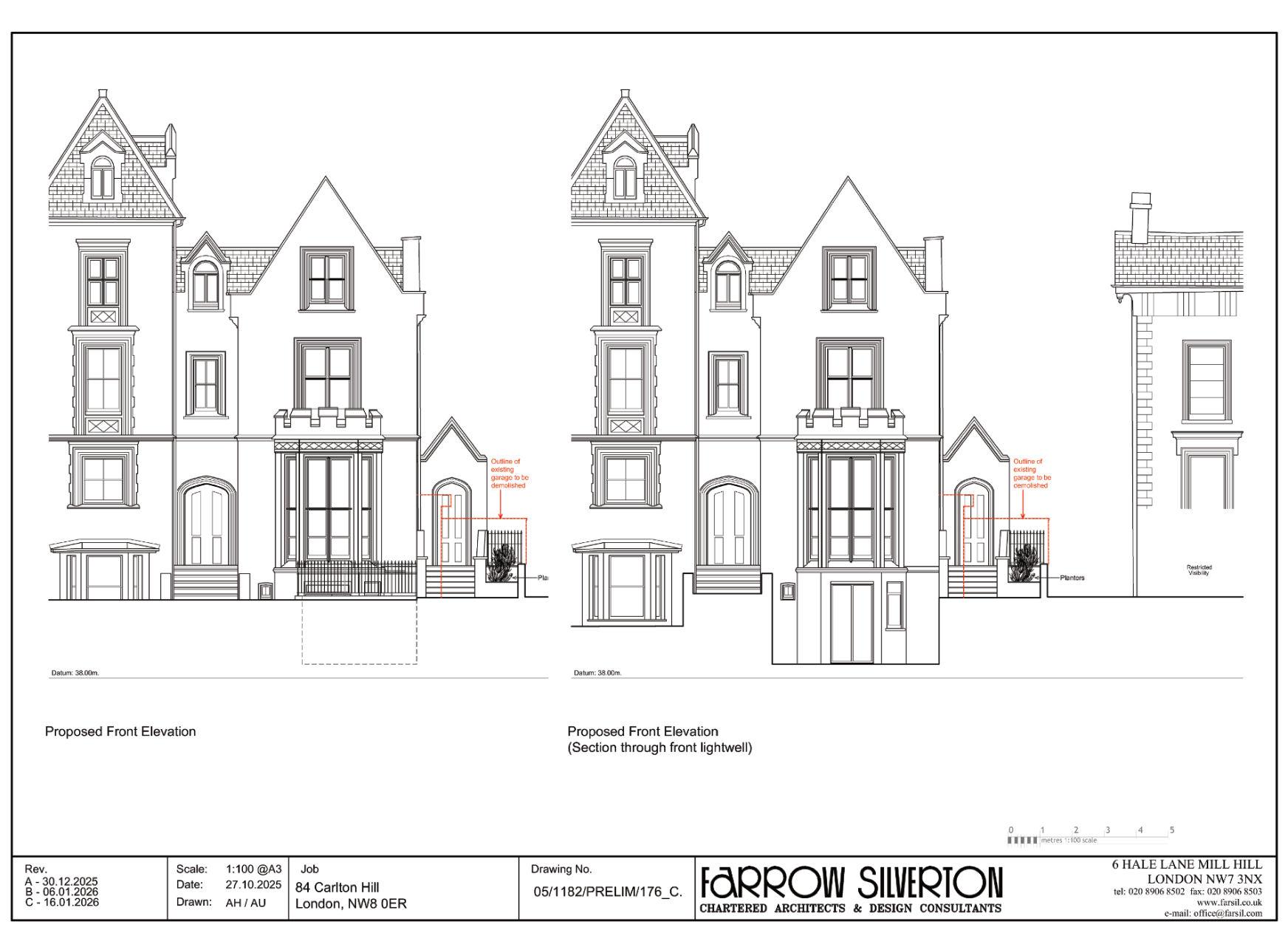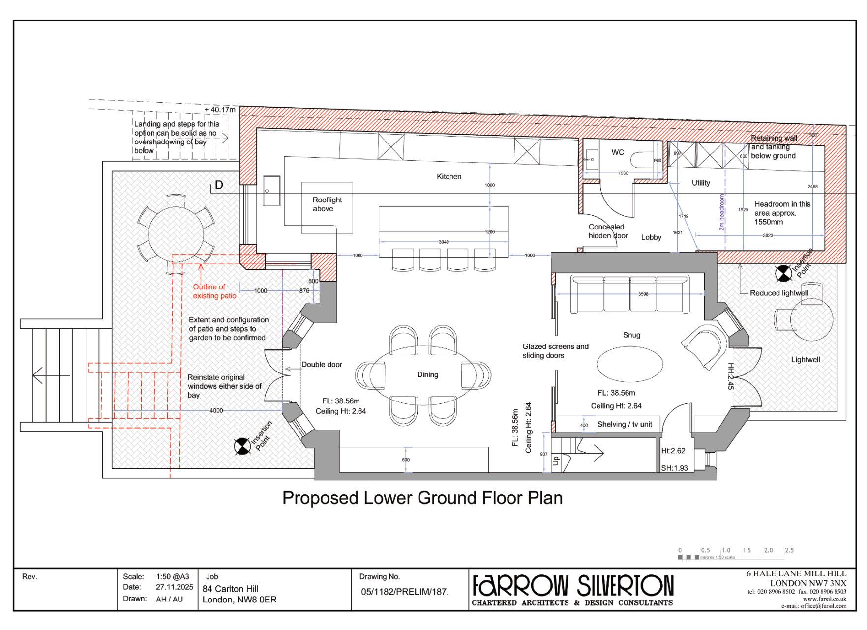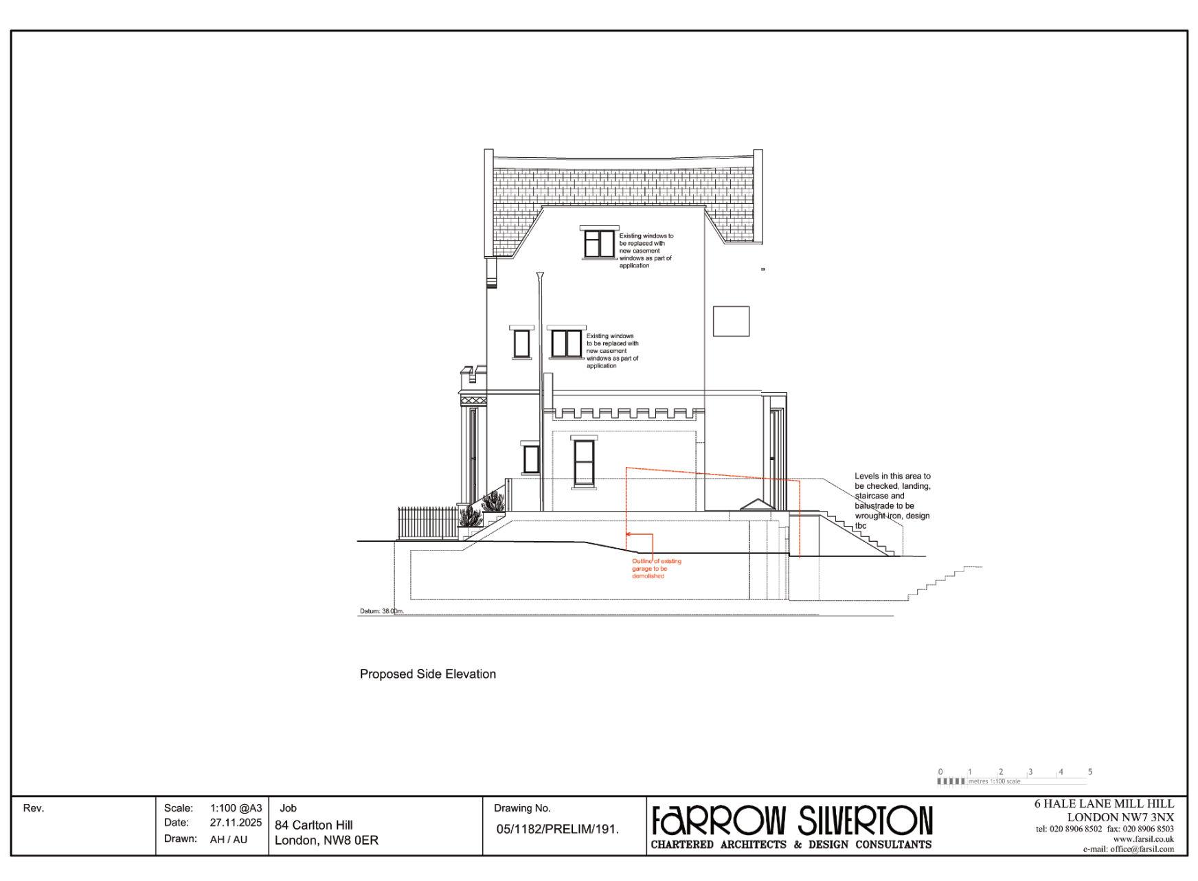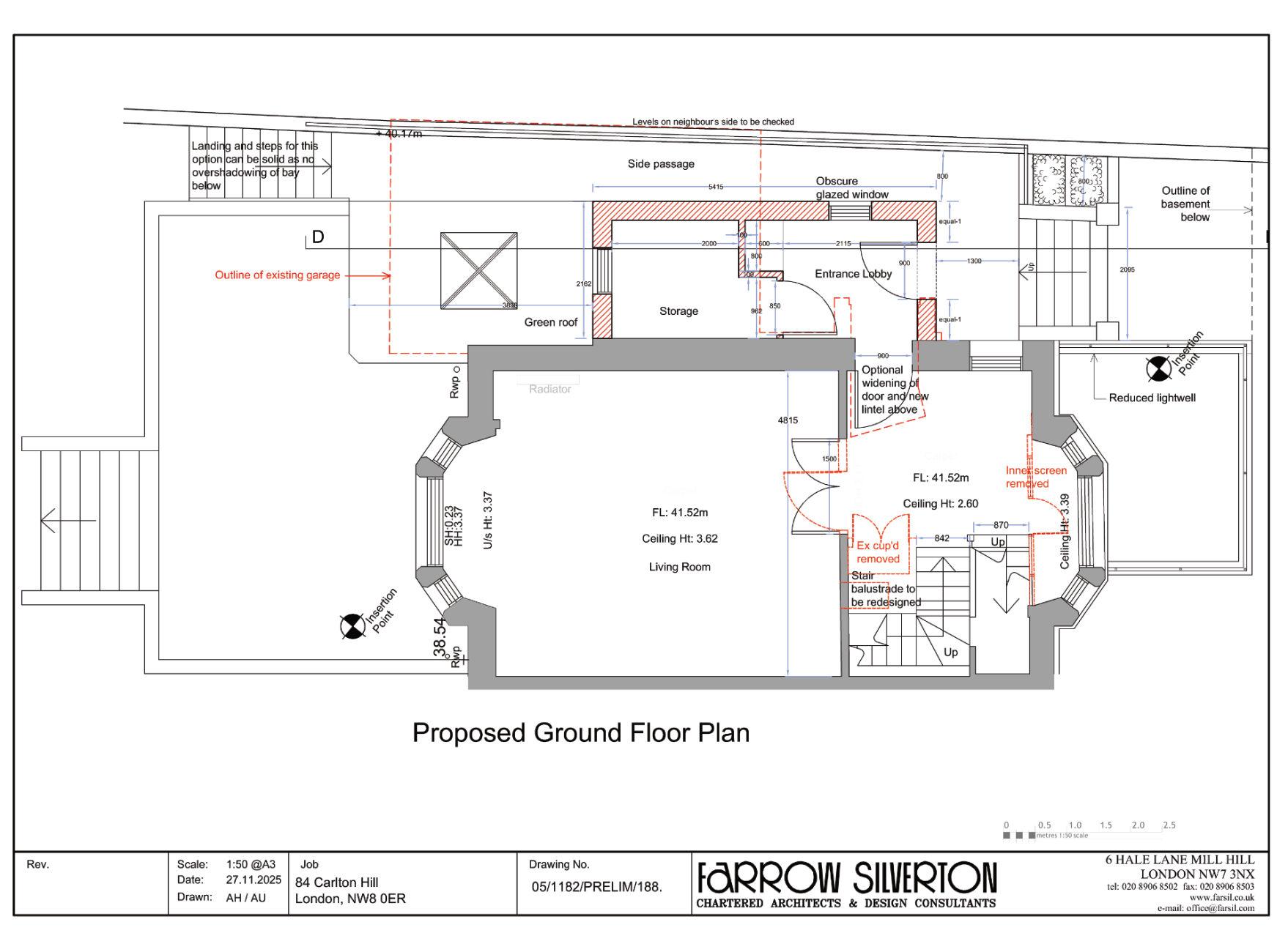 Our proposal seeks to create a side extension to make the front entrance more accessible, as well as the enlargement of the existing basement to create additional space within the family home. My responsibilities included adding more detail to the existing survey drawings and developing proposals for the plans and elevations to submit for preapplication (RIBA Stage 2).