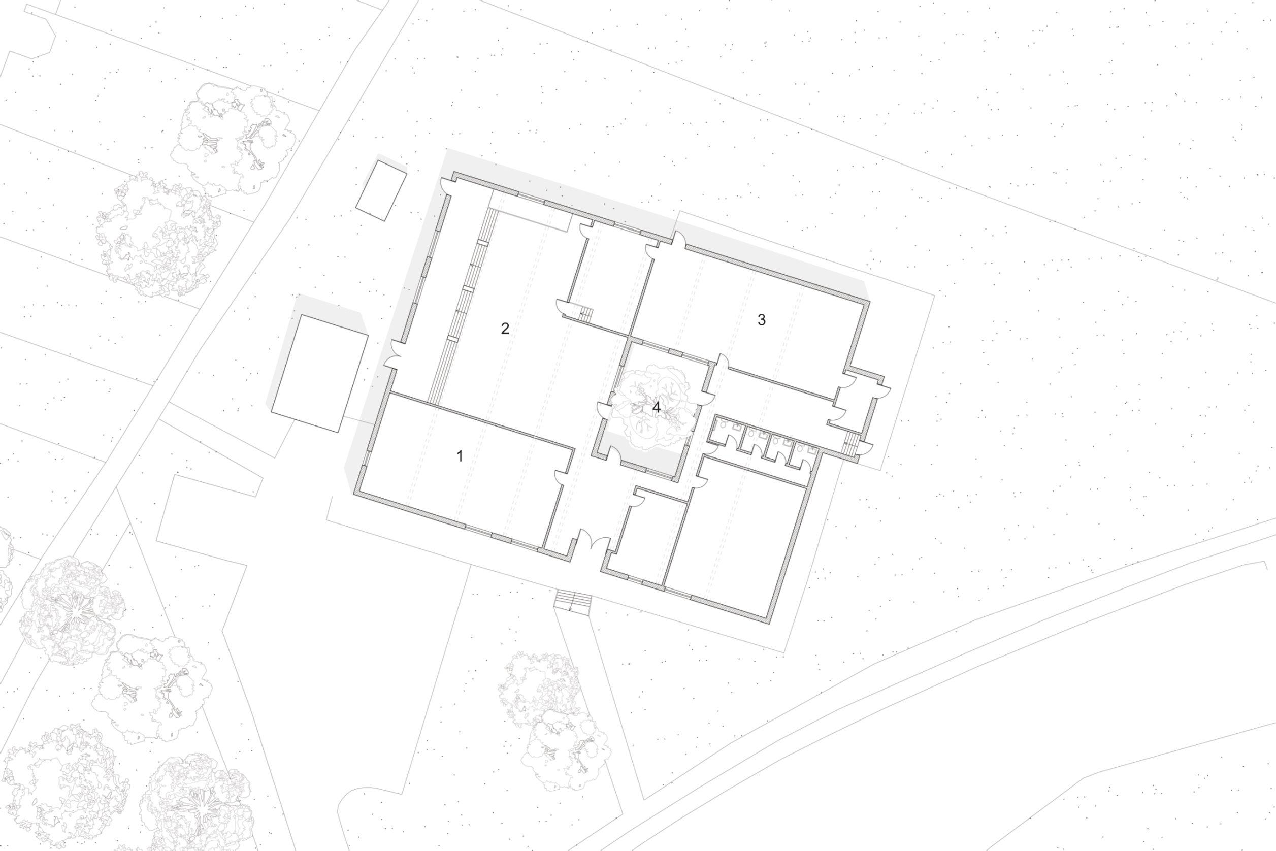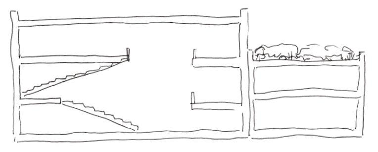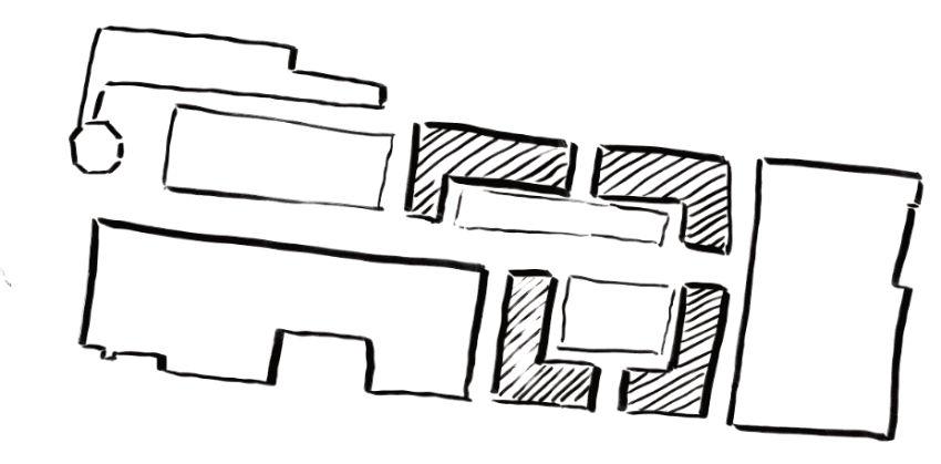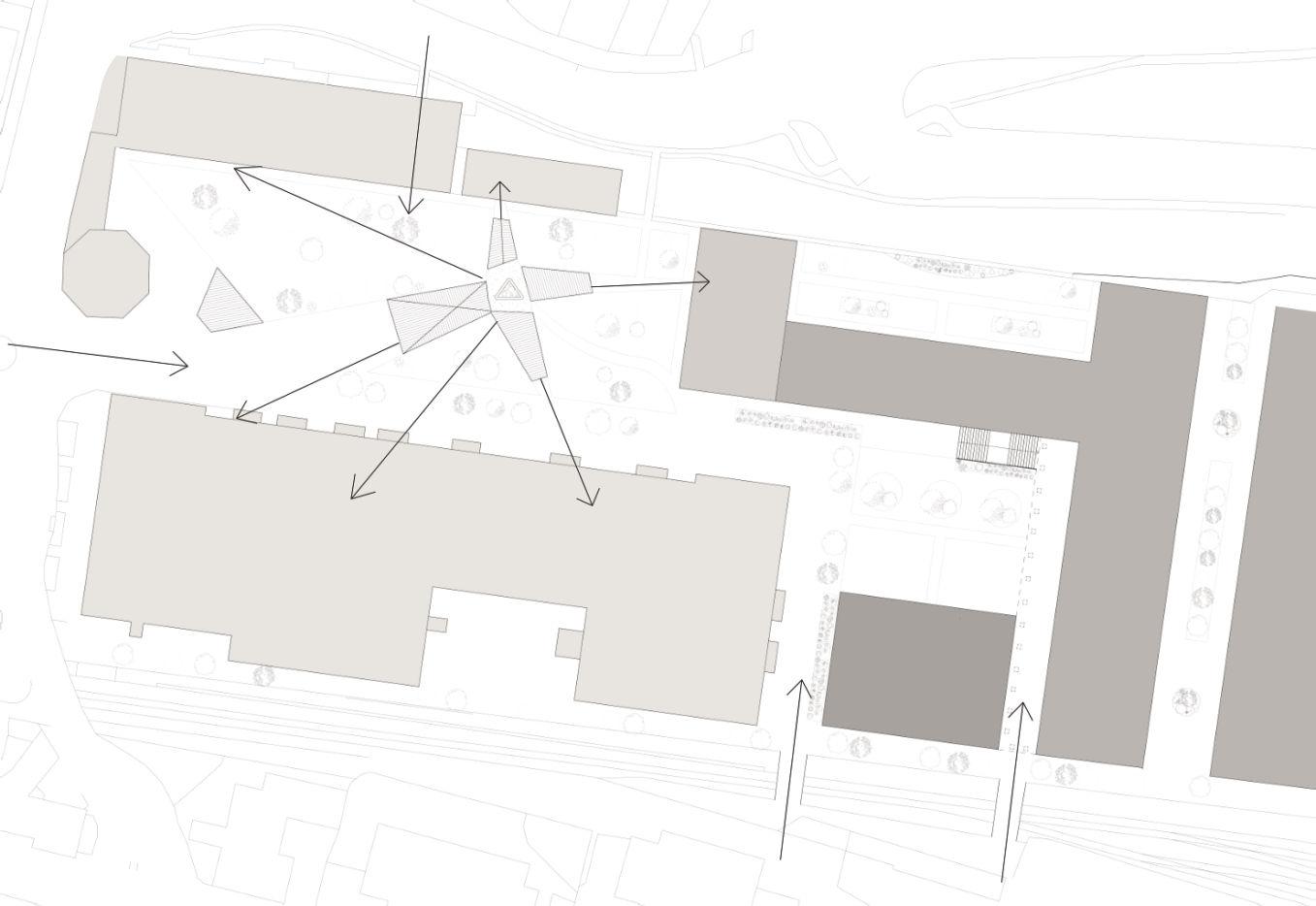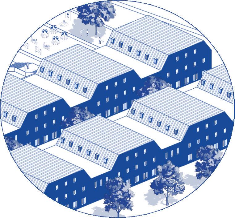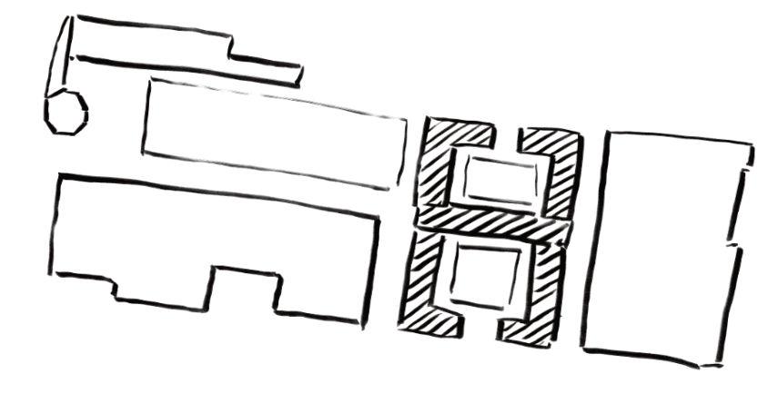 The site plan to the left shows my intentions for the site. I wanted there to be an uninterrupted visual connection to nature and for all the buildings in the scheme to overlook the outdoor growing space between them. The circulation routes emphasise this continuous journey through the natural environment.