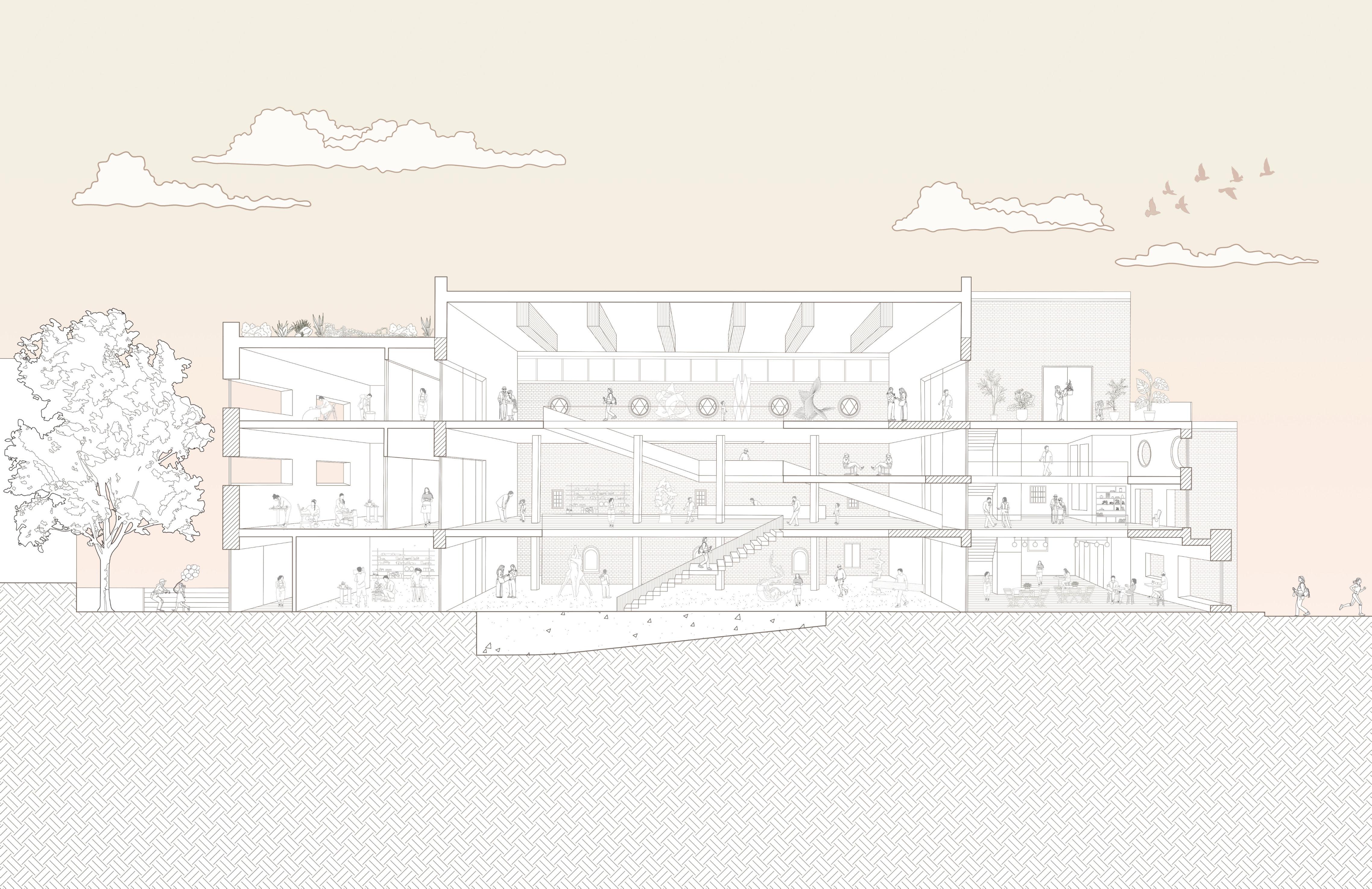 My proposal seeks to convert the Youth Centre and the surrounding site into a cookery and agriculture school for 16-18 year olds as an alternative to traditional further education. The surrounding allotments will also contribute to the scheme and be used as part of the outdoor growing space, where all food will be grown and eaten on site with an emphasis on lowering CO2 emissions.