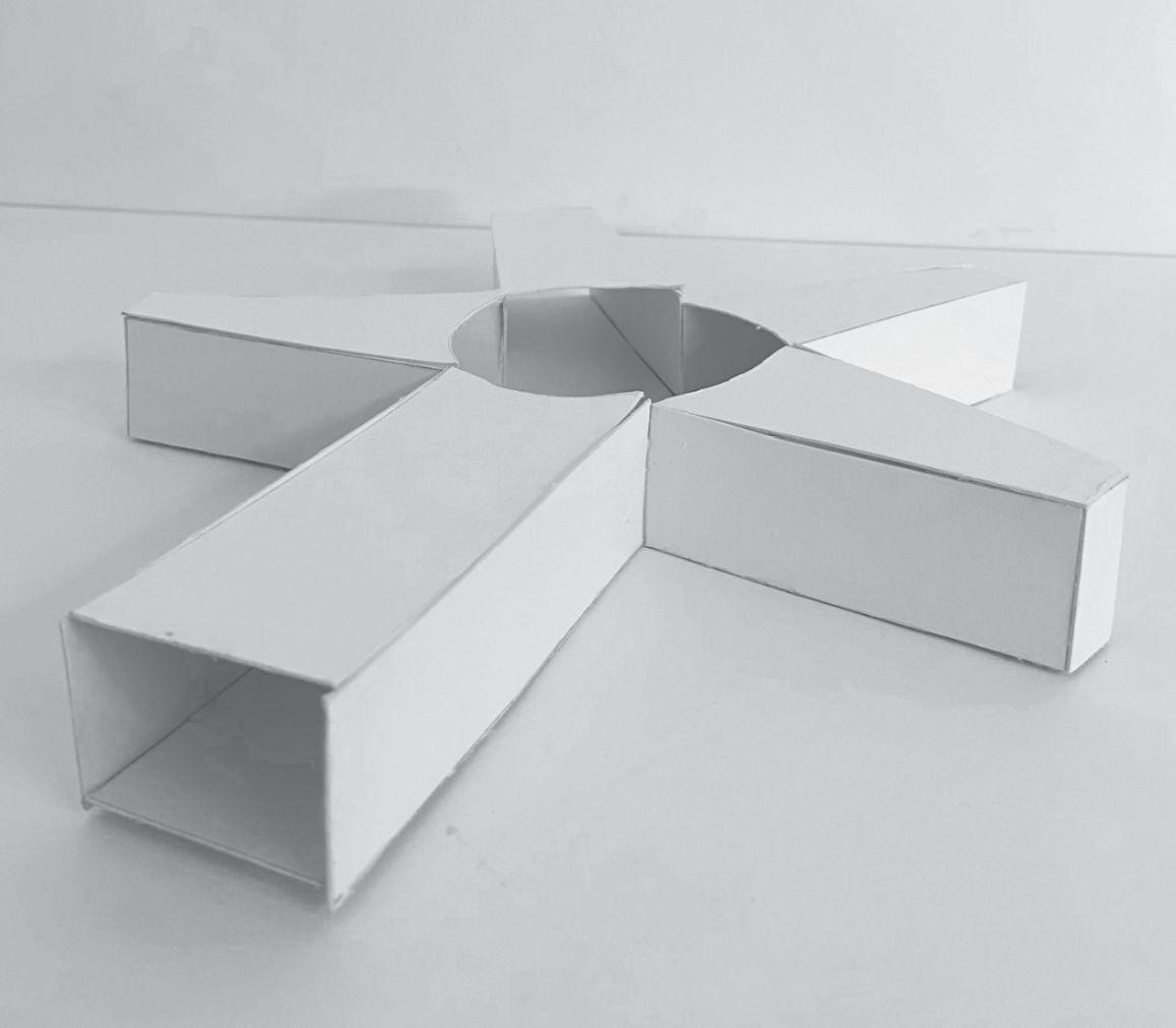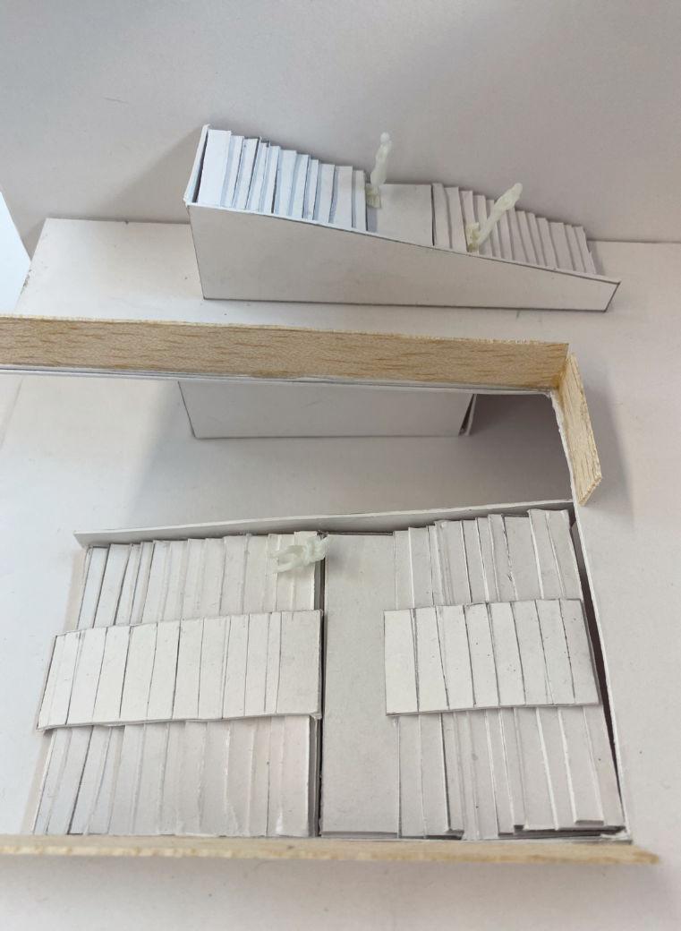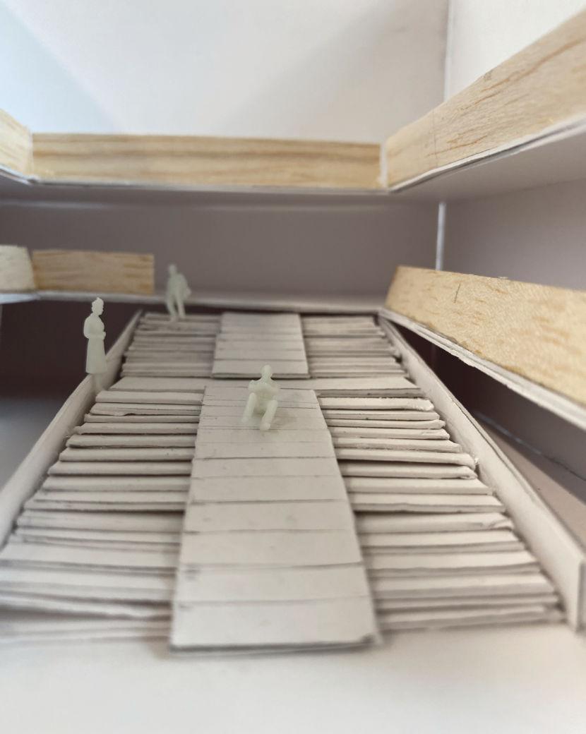 The model was inspired by the Design Museum’s central atrium by John Pawson and Allies & Morrison; where access and circulation is centralised through a lazy stair. I wanted to replicate this in the exhibition space and preserve the height and volume of the existing theatre space of the Hippodrome, while creating an intentional sense of flow and direction for users.