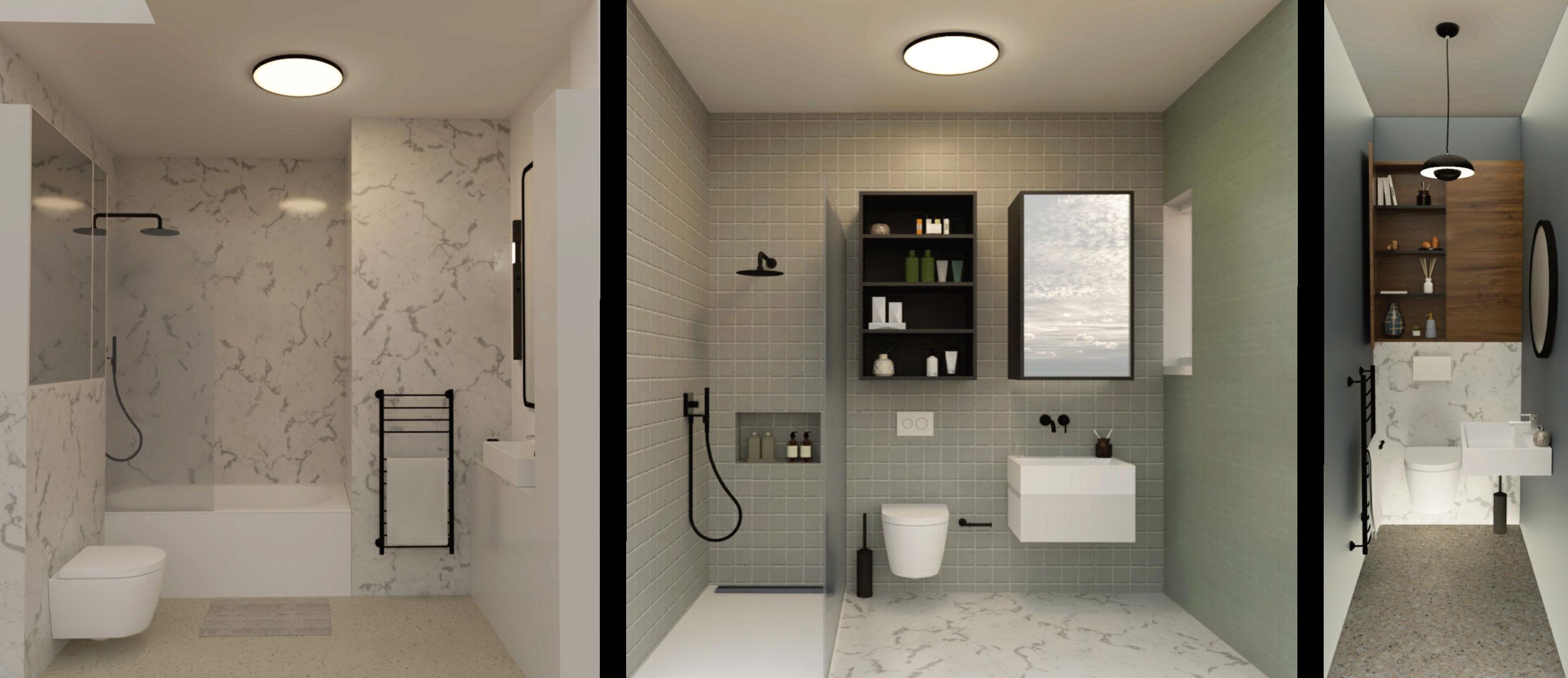 I spent the majority of my time on the master bathroom as the interior was largely finalised, but for the other bathrooms I came up with my own proposed finishes as potential options for the client to view. This was to help the client realise any final adjustments they might want to make as the project is in its construction stage (RIBA Stage 5).