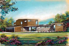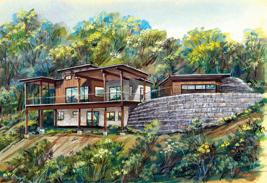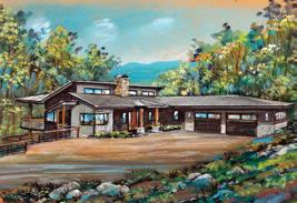Located in the Couch Mountain community, and with a true modern design, this home has both stunning long range and intimate tree top views. The steel framed cantilevers create an impressive modern form.
