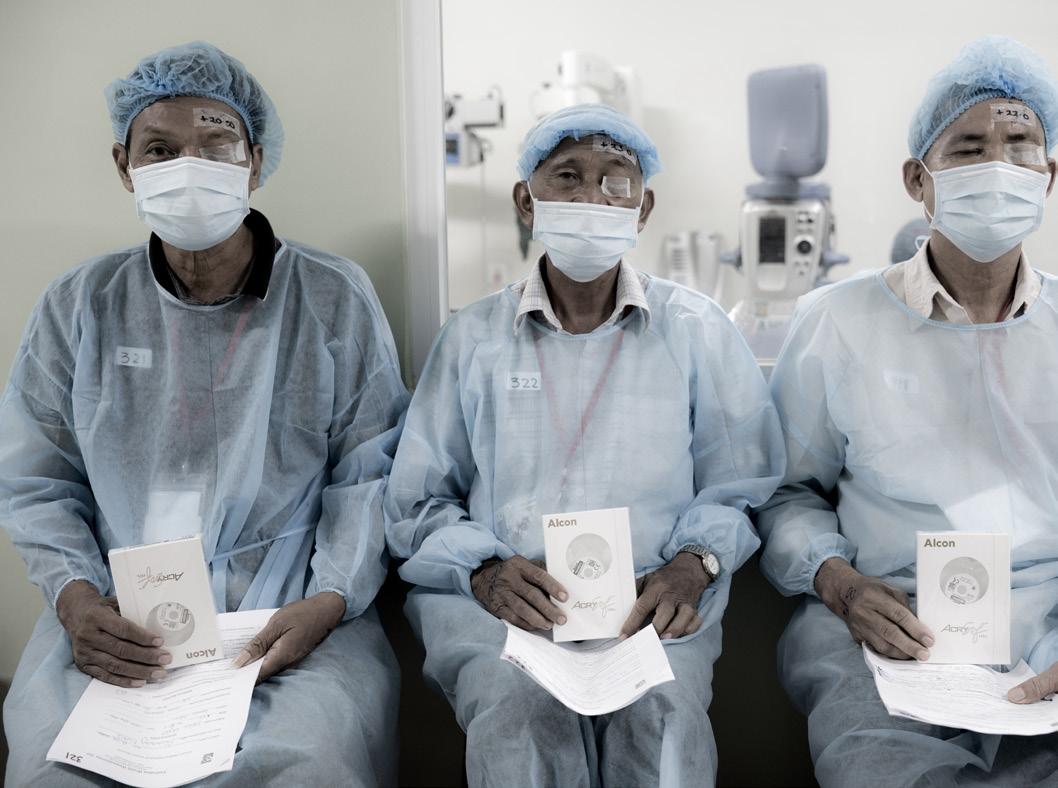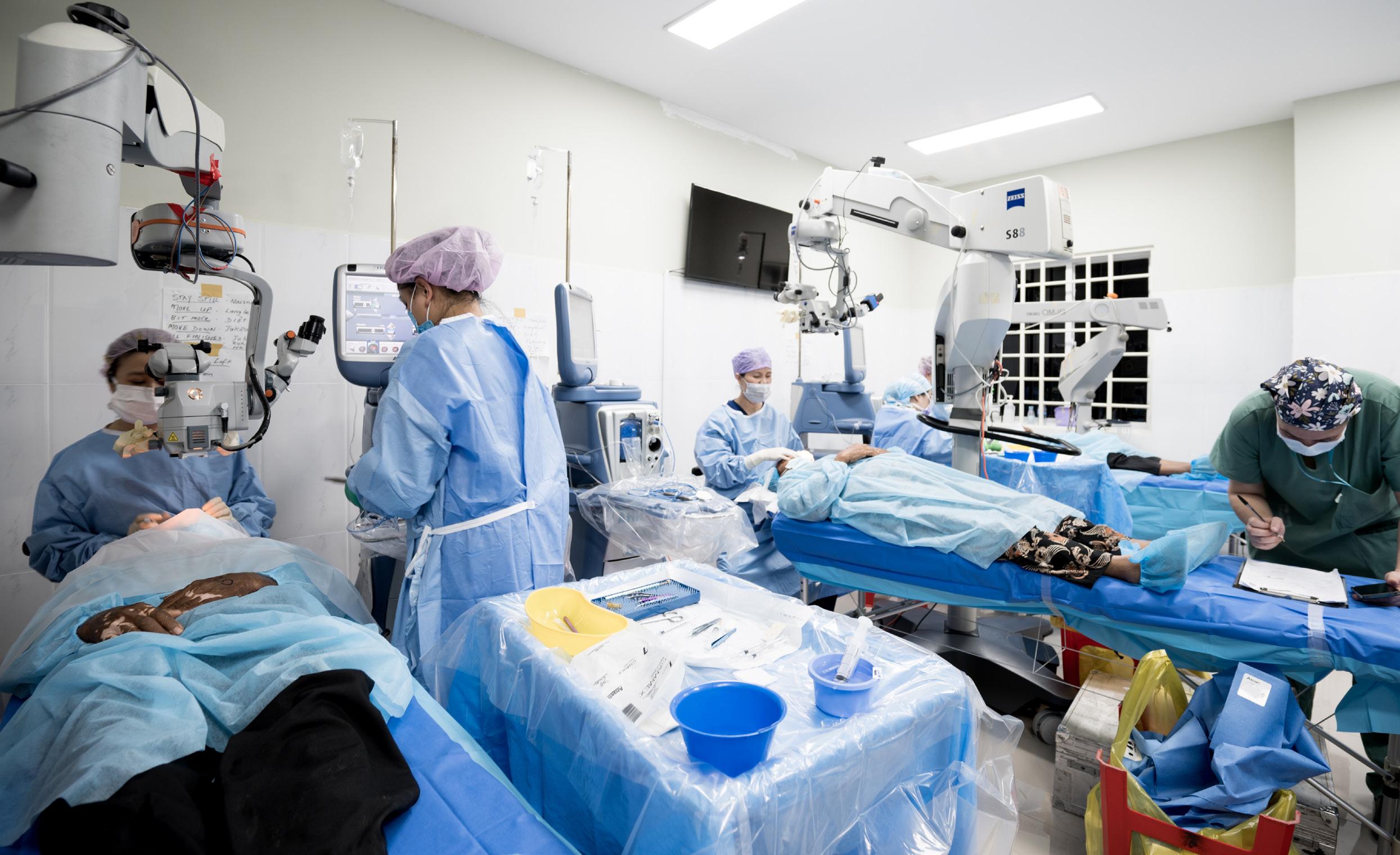 Khmer Soviet Friendship Hospital in Phnom Penh. The first day was devoted to setting up the operating theatres and examination rooms while some volunteers took the opportunity to visit a village where humanitarian food parcels were distributed. The next three days were devoted to processing the patients while providing medical and optometry examinations as well as performing cataract operations.