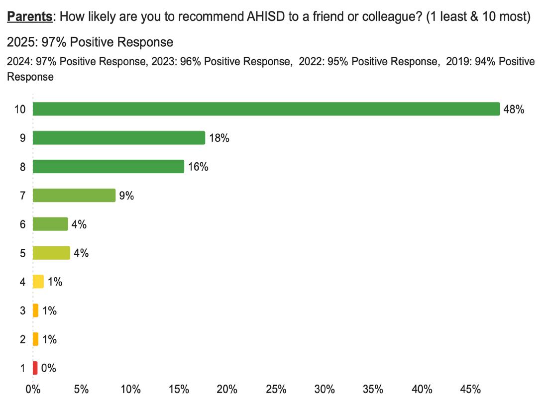 • 97% of AHISD parents would recommend the district to others, underscoring strong family trust and partnership.