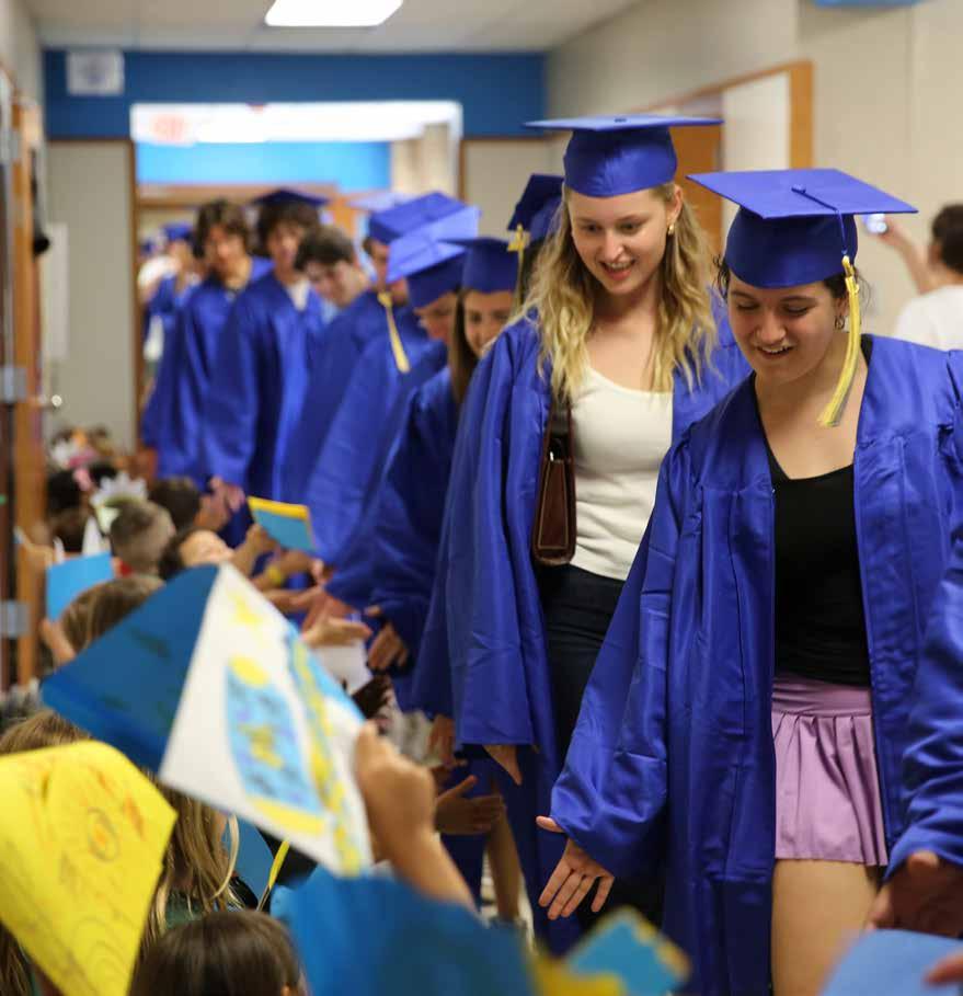Leading up to the graduation ceremony, seniors were able to take part in many traditions. They attended Senior Sendoffs at Cambridge and Woodridge elementary schools, reuniting with former teachers and walking down memory lane with pictures and yearbooks. The graduates also donned their caps and gowns for Senior Walks and paraded through both elementary schools among cheering teachers and students.
