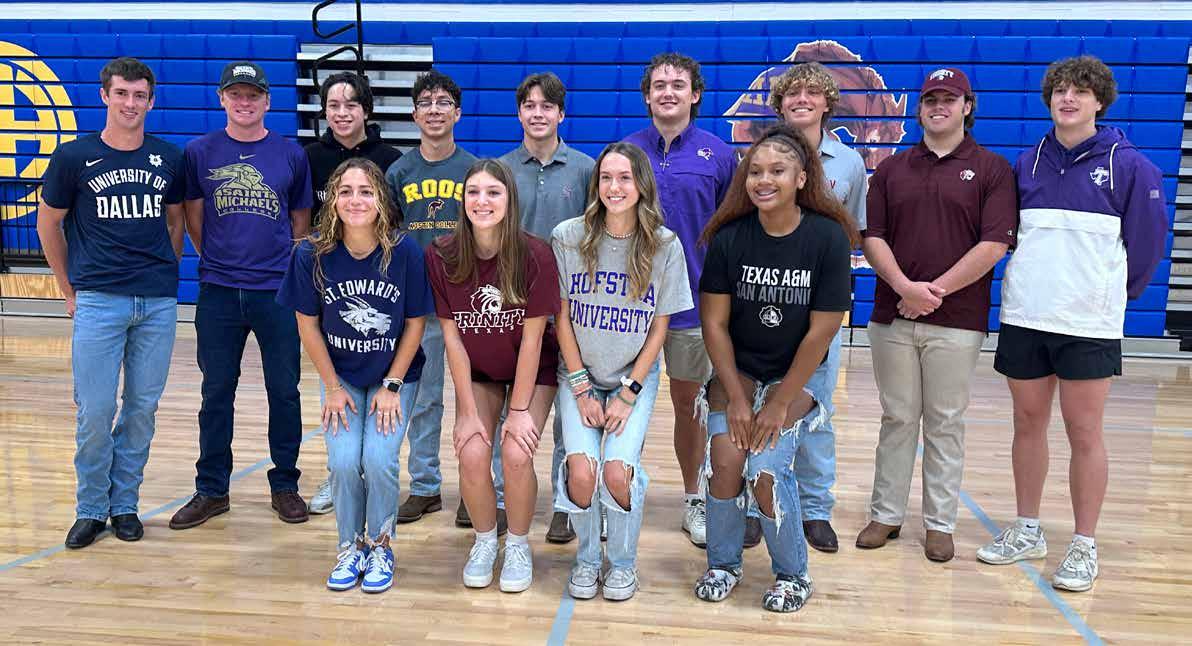 Thirteen student athletes signed letters of intent to play their sports at the next level at Signing Day in May at the Muledome.