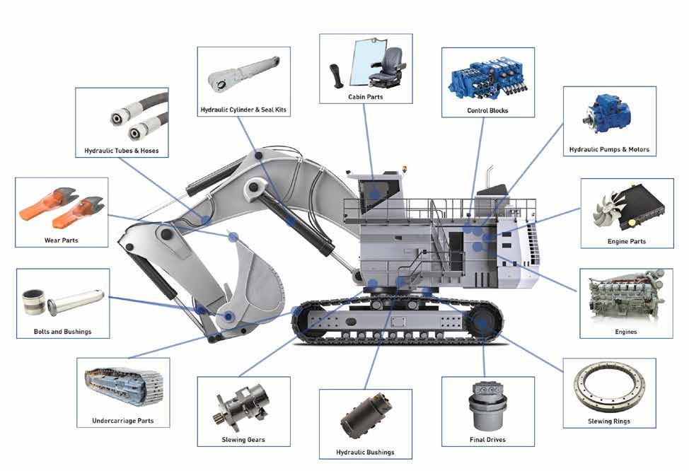 Suministramos repuestos originales, OEM y aftermarket directamente del fabricante, para excavadoras Komatsu Mining, Caterpillar/O&K Terex/Bucyrus y Liebherr principalmente. Tenemos más de 20.000 repuestos en stock a disposición de nuestros clientes para minimizar sus costos de paro.