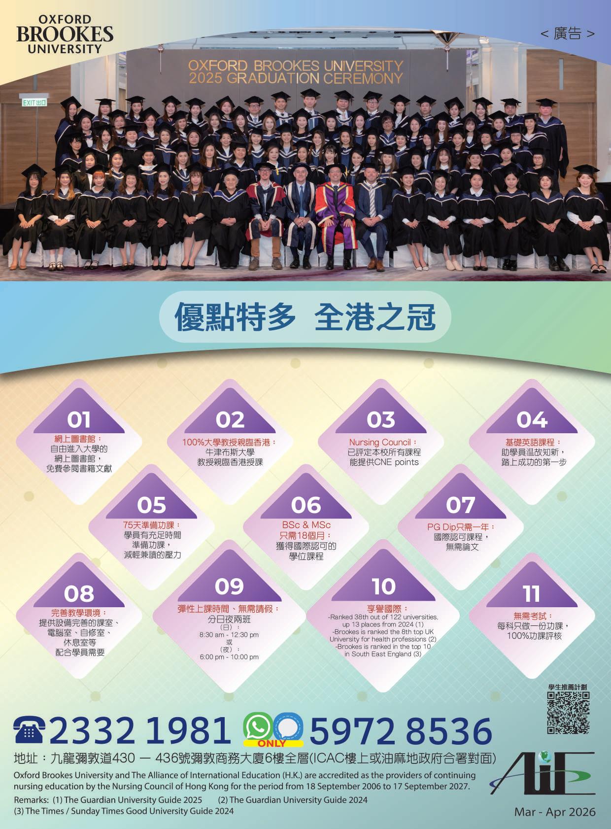 In a successful and rewarding collaboration with Western Sydney University since 1991, the School of Continuing Education, Hong Kong Baptist University has o ered Bachelor’s and Master’s degree programmes in health care, and now over 4,600 professional participants have graduated.