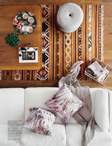 Matta 140×200 cm 1 699:- Beige sittpuff 599:- Tidnings- och vedkorg i rotting 399:- Kudde 50×50 cm 229:-/st Beige/vit pläd 499:- Blommig bricka 149:- Motstående sida: Matta i hampa 140×200 cm 799:- Brunt fårskinn 899:- Vitt fårskinn 899:- Svart/vit bänk 999:- Prydnadsuggla 139:-