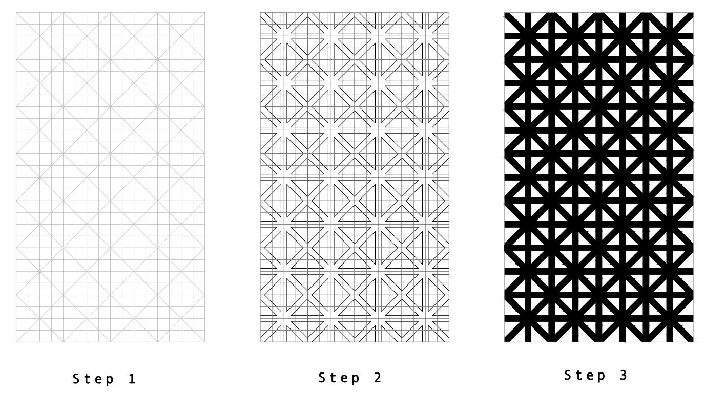 The outer surface of the southern façade was covered by a protective structure consisting of sunshades that open and close automatically according to the intensity of the sun rays. The designer was inspired by this idea from the stainless-steel panel Arab Mashrabiya, which provides both shade and privacy at the same time, allows an external view all the time as it is the main facade of the project. The outer structure is designed in a framework independent from the inner structure, and each triangle is coated with fiberglass and programmed accordingly for the movement of the sun. At night, the awnings remain folded, allowing the building's main glass façade to emerge. Either during the day or automatically with the movement of the sun, This dynamic mashrabiya reduces the percentage of solar radiation that enters the building and thus saves a lot of electricity consumed by the air conditioner.