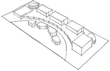 Project Idea . The terrain was taken into account. Flood channels and green areas were studied, preserved and utilized. Accordingly, a green line was designed from the top of the area and its extension according to the slope of the land and the topography of the land to be a park and the main line of the plan . Figure100