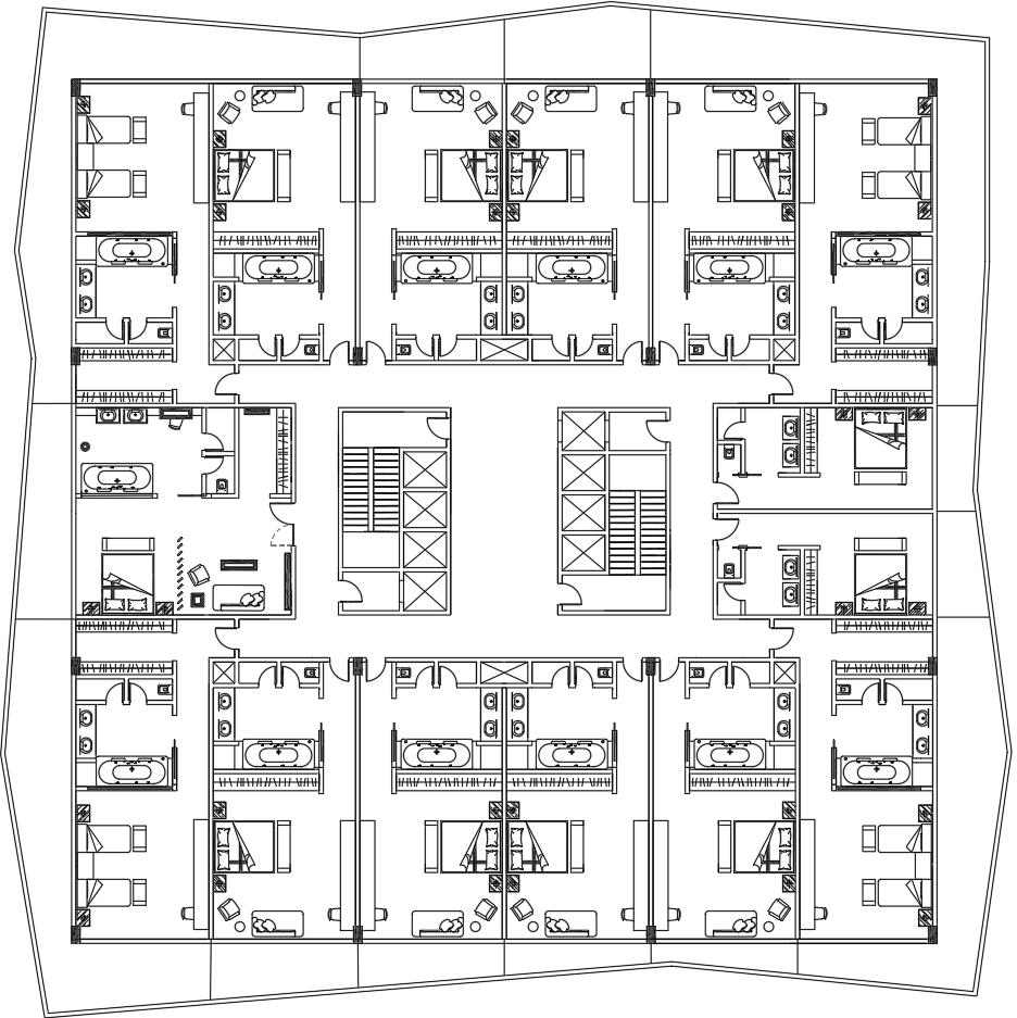 The design idea began with building two towers connected by a commercial center. The two towers are designed with different lengths, one of which is residential (hotel) and the other is office