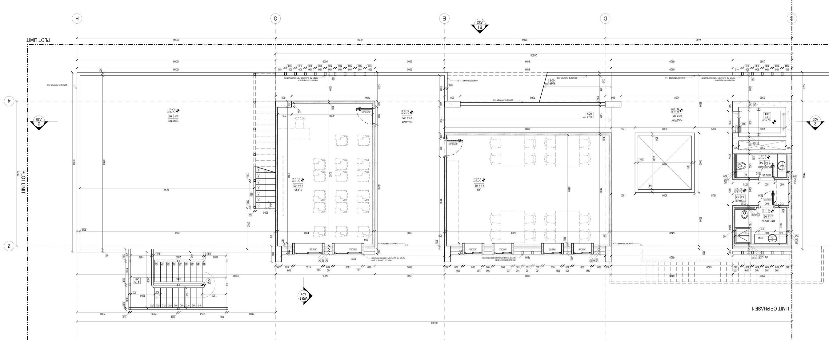 running along the whole plot was allows the city to flow into the plot, by continues along the neighborhood. to host all the technical programs classes, labs, and workshops.