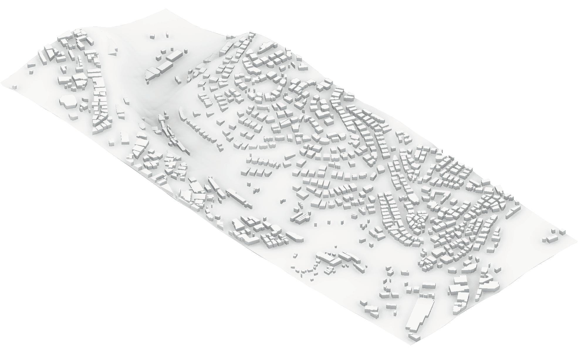 Despite the city being home to a rich heritage and history of landscapes, the current dynamic between Beirut and its landscapes is one of disregard and neglect. This is exemplary at the mouth of the concrete canal of the Beirut River below Hazmieh, near the historic Jisr el Bacha. Here, the dilapidated river intersects with neglected orchards and suburbs, creating a stark contrast at a steep cliff. The existing situation can be read as a valley conceived of disconnected edges.