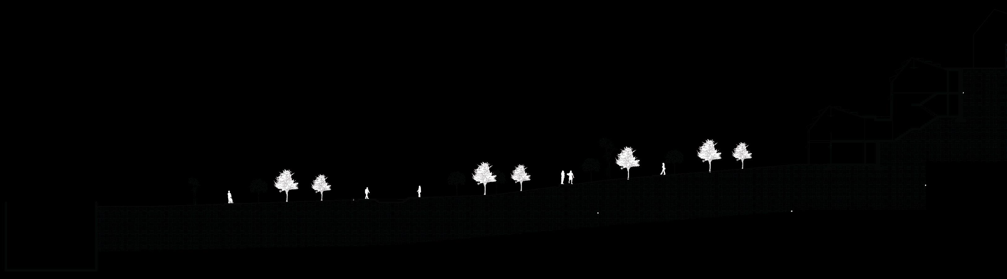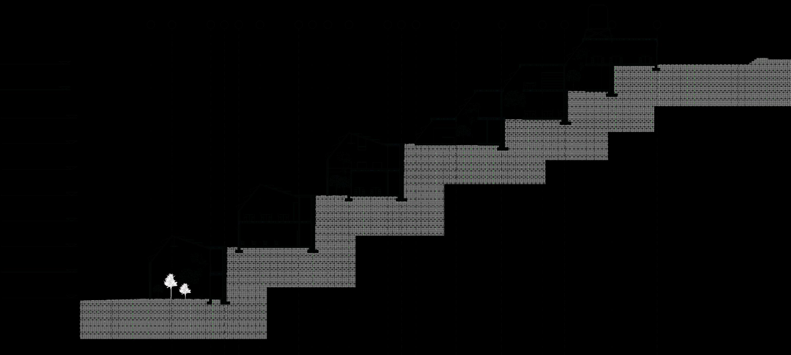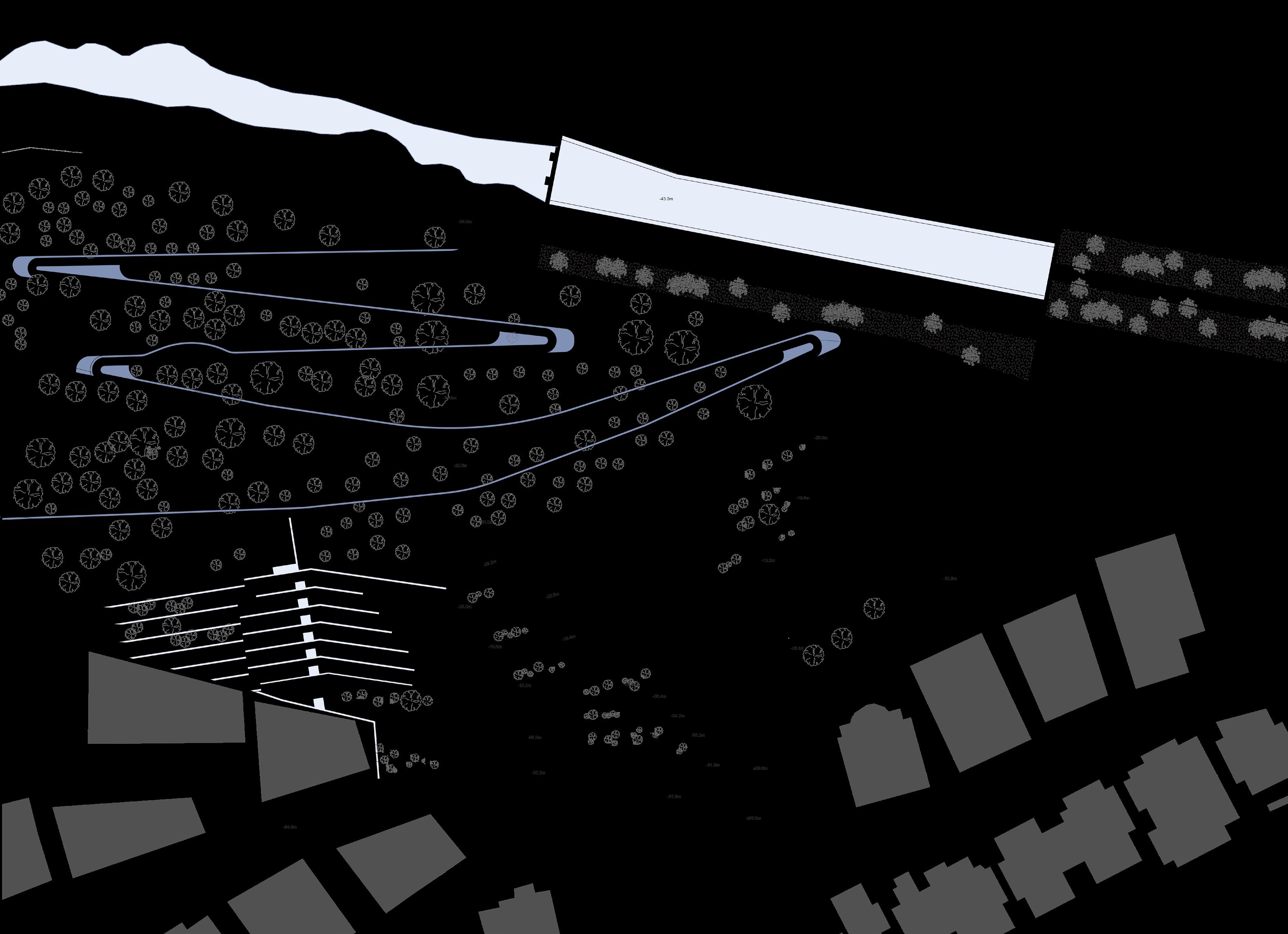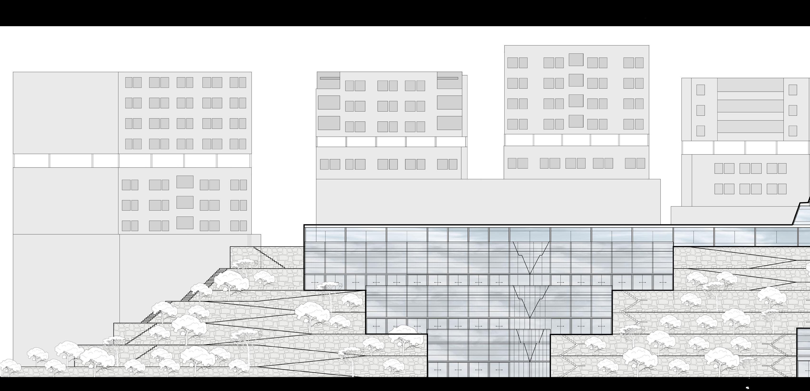 A sequence of terraced masses emerges in alignment with the natural topography. The terraces undergo a transformative process through a series of extensions, fragmentations, intersections, and connections to create the overall scheme. The scheme physically occupies the cliff, allowing physical connections. While the terraced landscapes, composed of ramps along with the water features and additional agriculture, allow for the rejuvenation of the orchards. The architecture of a greenhouses is upgraded by introducing double height spaces housing hybrid education, research, and agricultural functions, creating dynamic space where work and shared spaces are invigorated by the planted gardens. The latter motifs are extended towards the cultural center at the summit of the site, dissolving any rigidity and creating welcoming spaces of discussion.